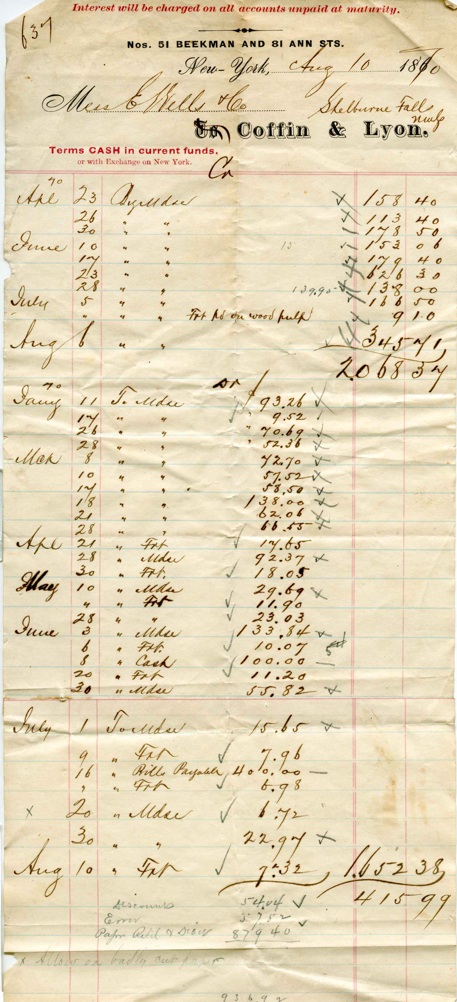 account; Coffin & Lyon - Wholesale Paper Warehouse - N. Y.