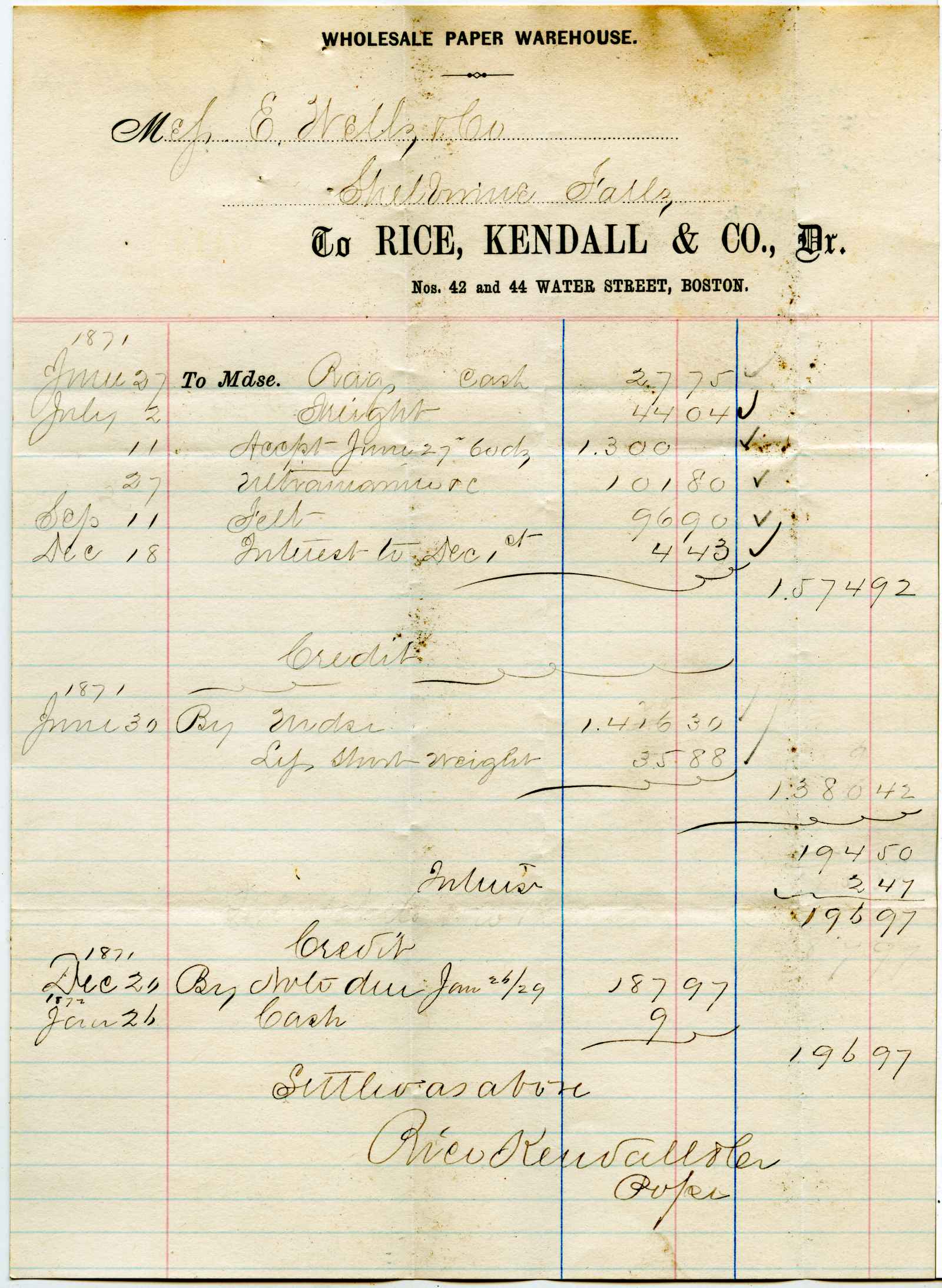 account; Rice, Kendall & Co. - Paper Warehouse - Boston