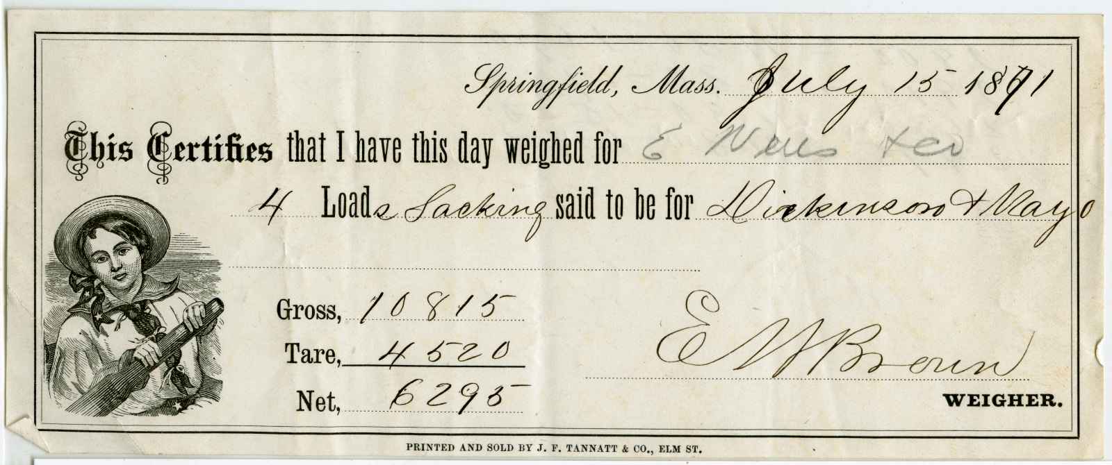 receipt; Dickinson & Mayo - Paper Stock & Old Metals - Springfield, Ma.