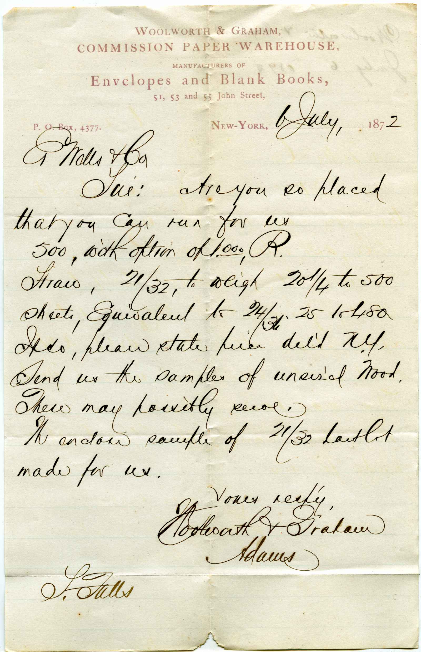 letter; Woolworth & Graham - Manufacturers of Envelopes and Blank Books - N.Y.