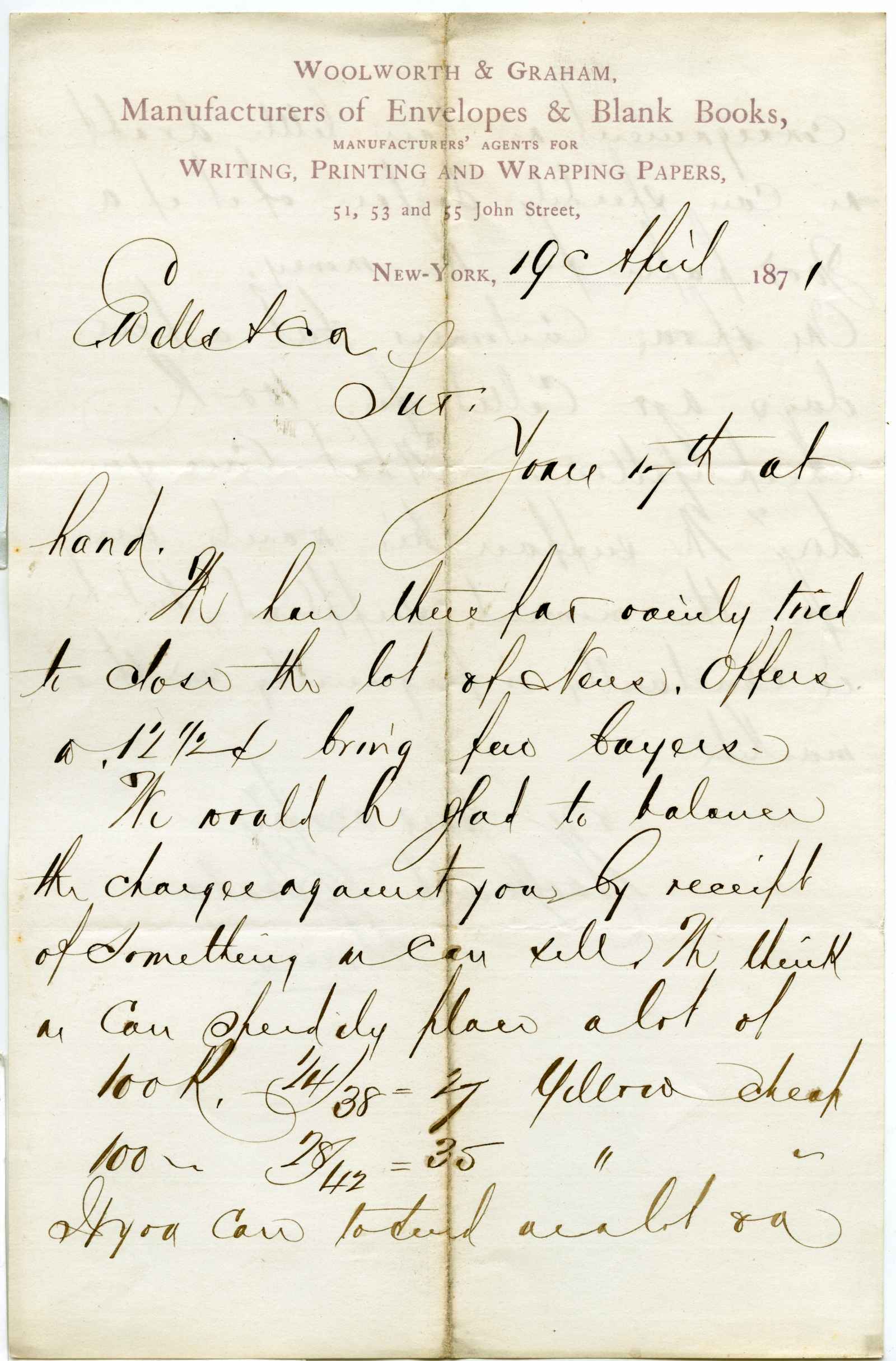 letter; Woolworth & Graham - Manufacturers of Envelopes and Blank Books - N.Y.
