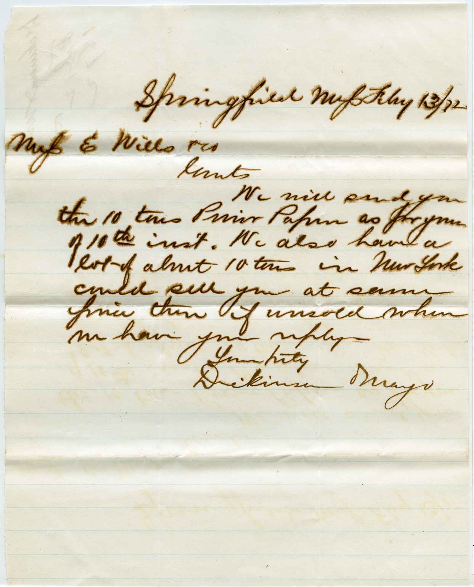 letter; Dickinson & Mayo - Paper Stock & Old Metals - Springfield, Ma.