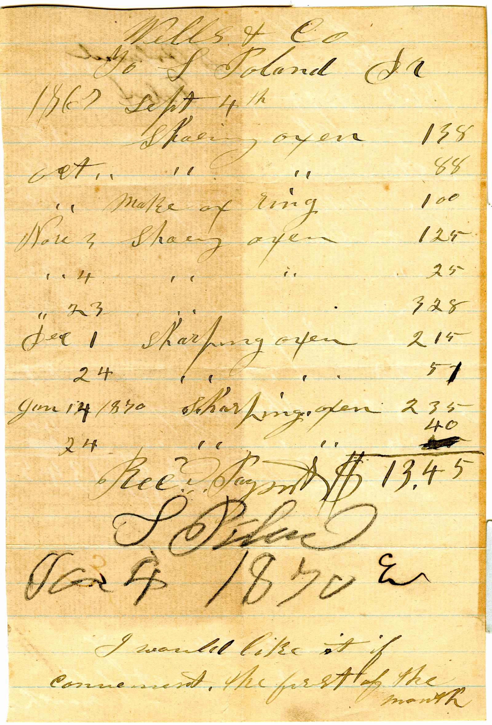 incoming correspondence to the papermaking company of Elisha Wells - circa 1870