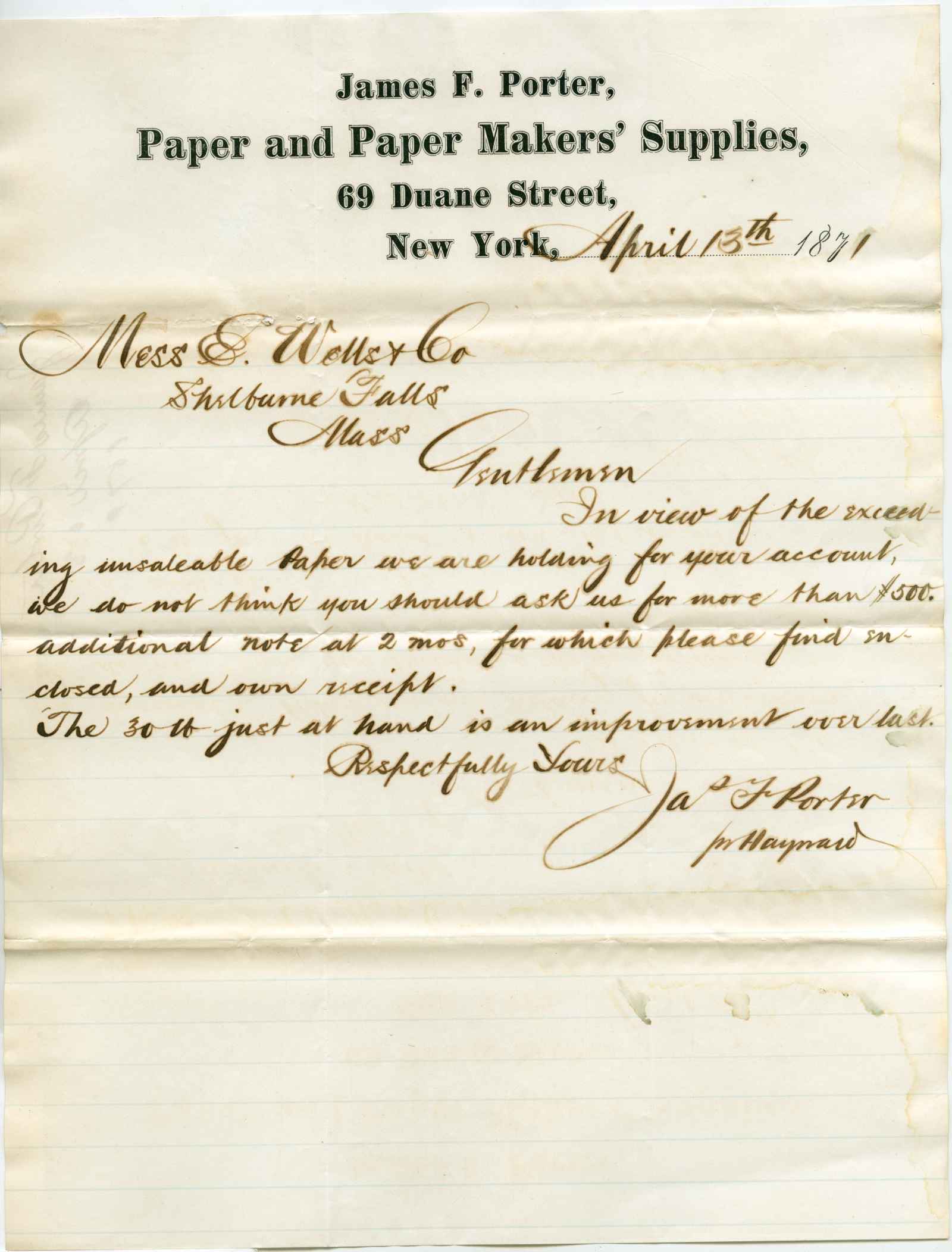 letter; Porter, James & F. - Paper & Paper Maker's Supplies