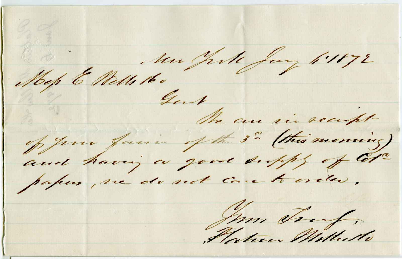 incoming correspondence to the papermaking company of Elisha Wells - circa 1870
