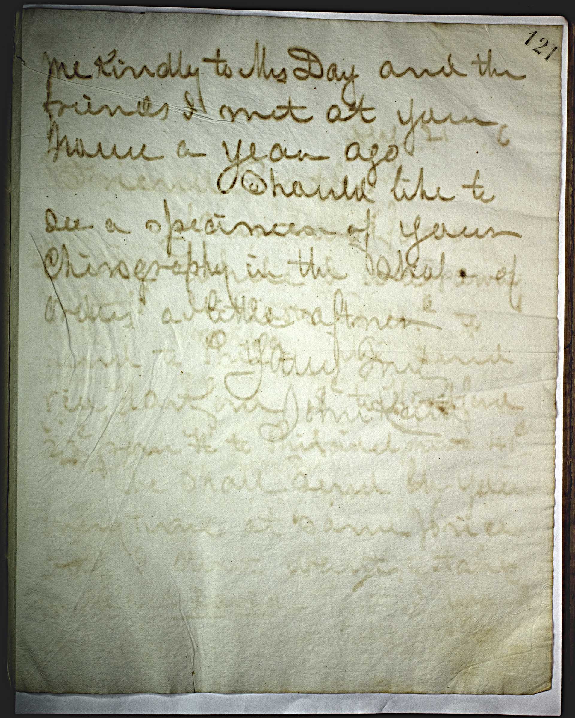 me kindly to Mrs. Day and the friends I met at your home a year ago. -- Should like to see a specimen of your Chinography in the shape of others a little [last four pages unintelligble] --