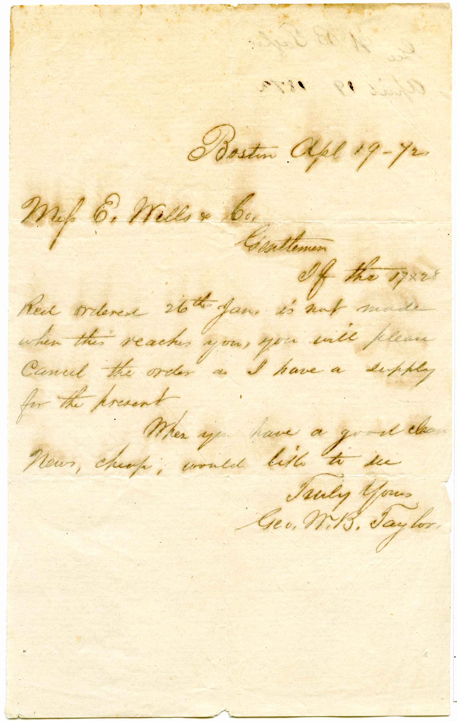 | dc.description.abstract | incoming correspondence to the papermaking company of Elisha Wells - circa 1870 | |