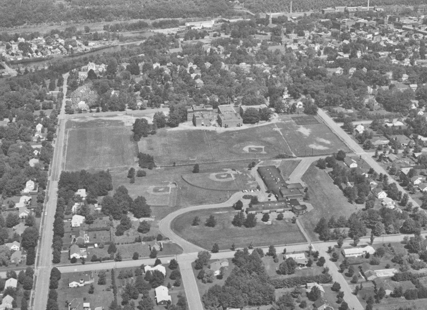 - Turners Falls High School; lookin' due south. On the third terrace or "Hill" area.