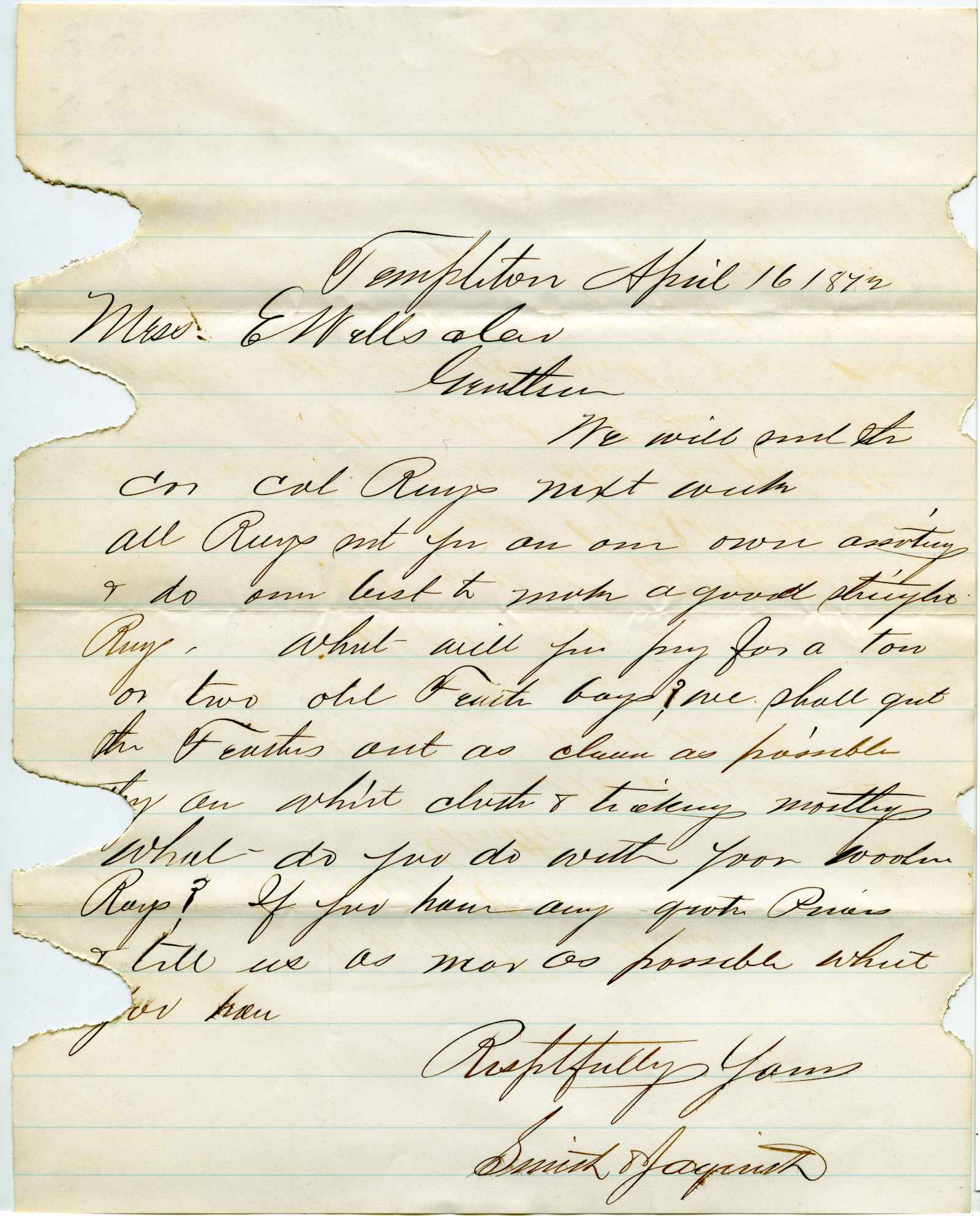 letter; Smith & Jaquith - Plain & Tappanned Tin, Brass & Copper Wares - Templeton, Ma.