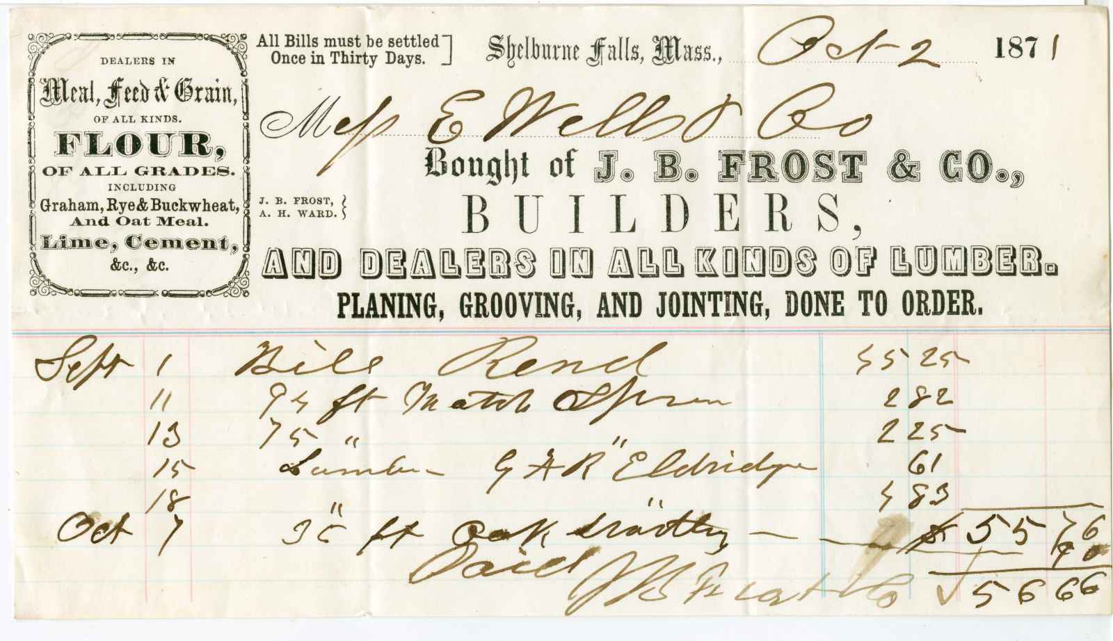 account; Frost, J. B. & Co. - Lumber Dealers - Shelburne Falls, Ma.