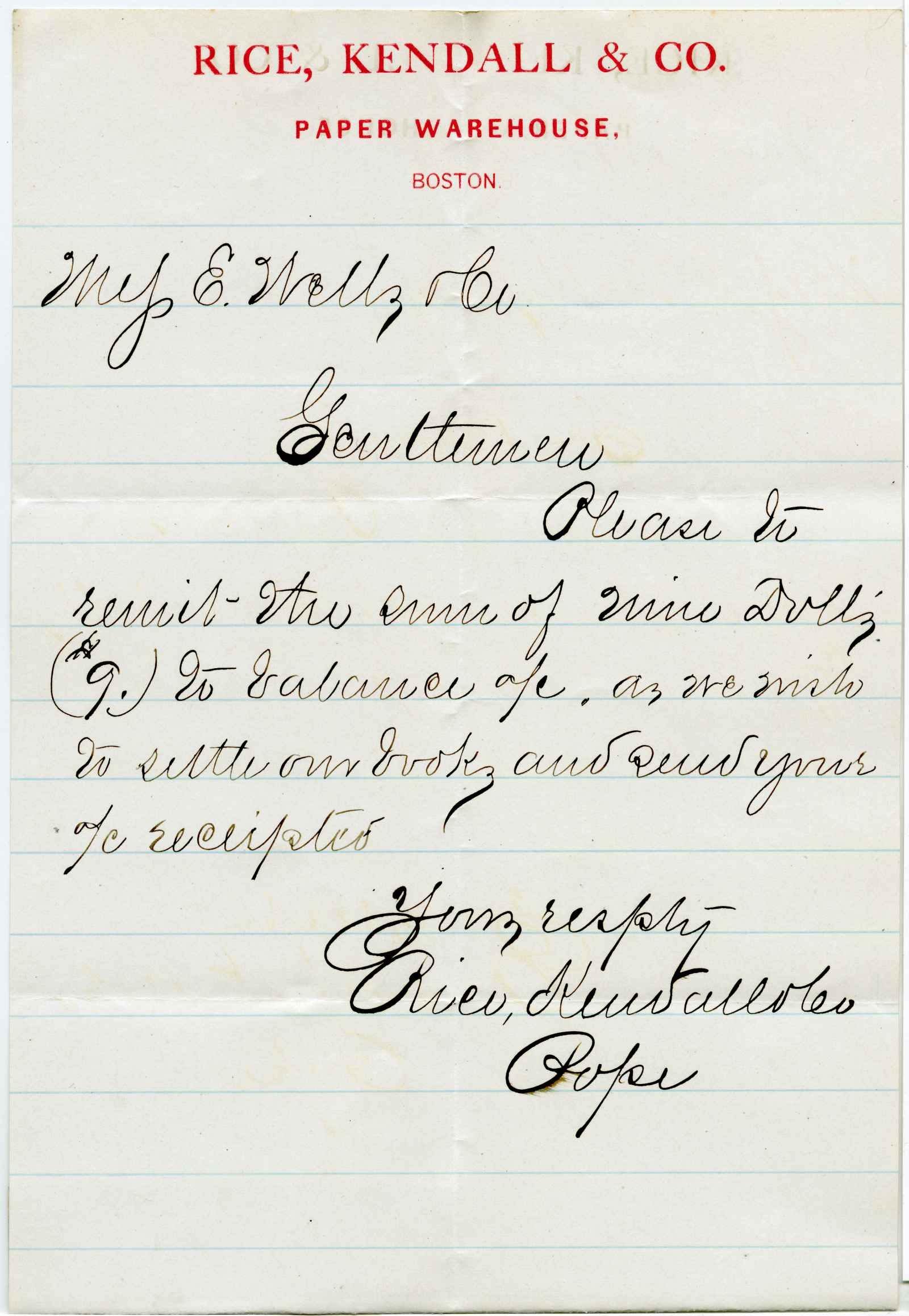 | dc.description | letter; Rice, Kendall & Co. - Paper Warehouse - Boston | |