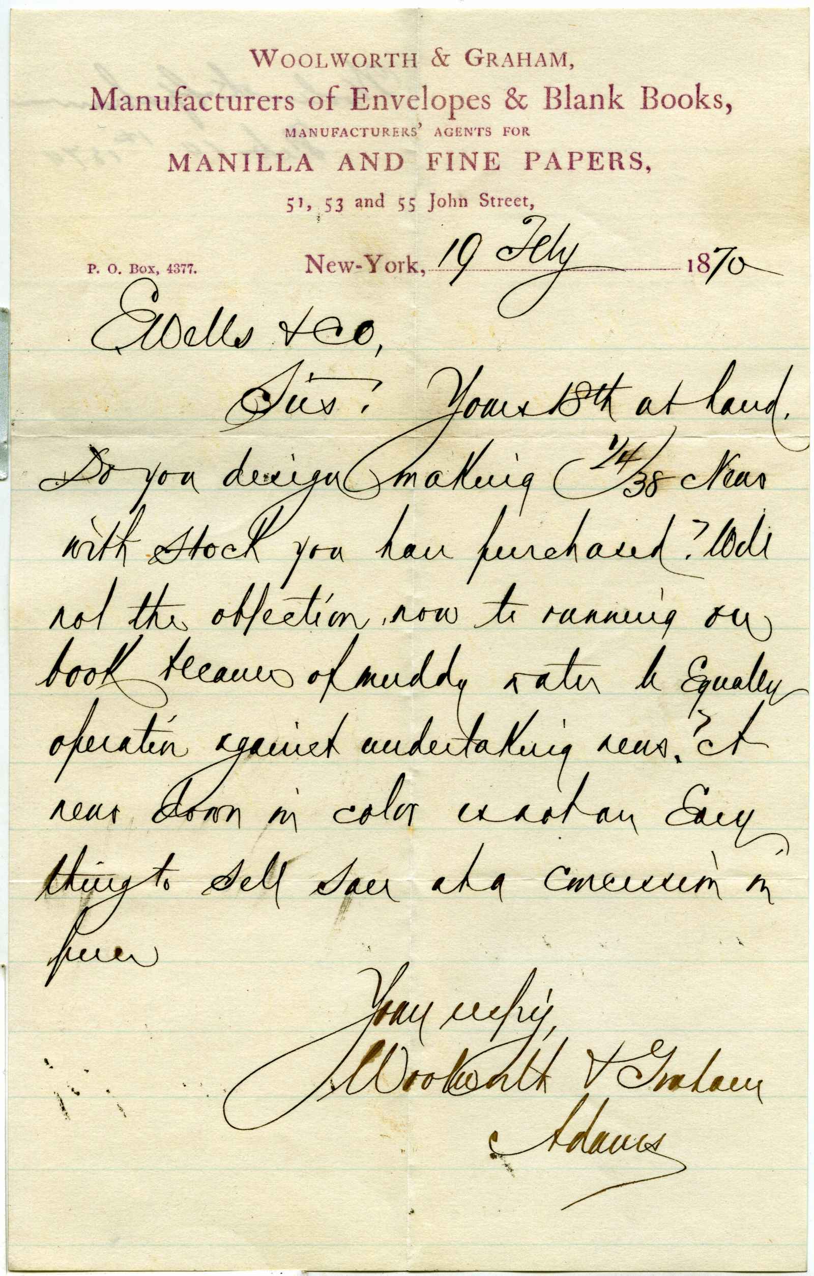 letter; Woolworth & Graham - Manufacturers of Envelopes and Blank Books - N.Y.