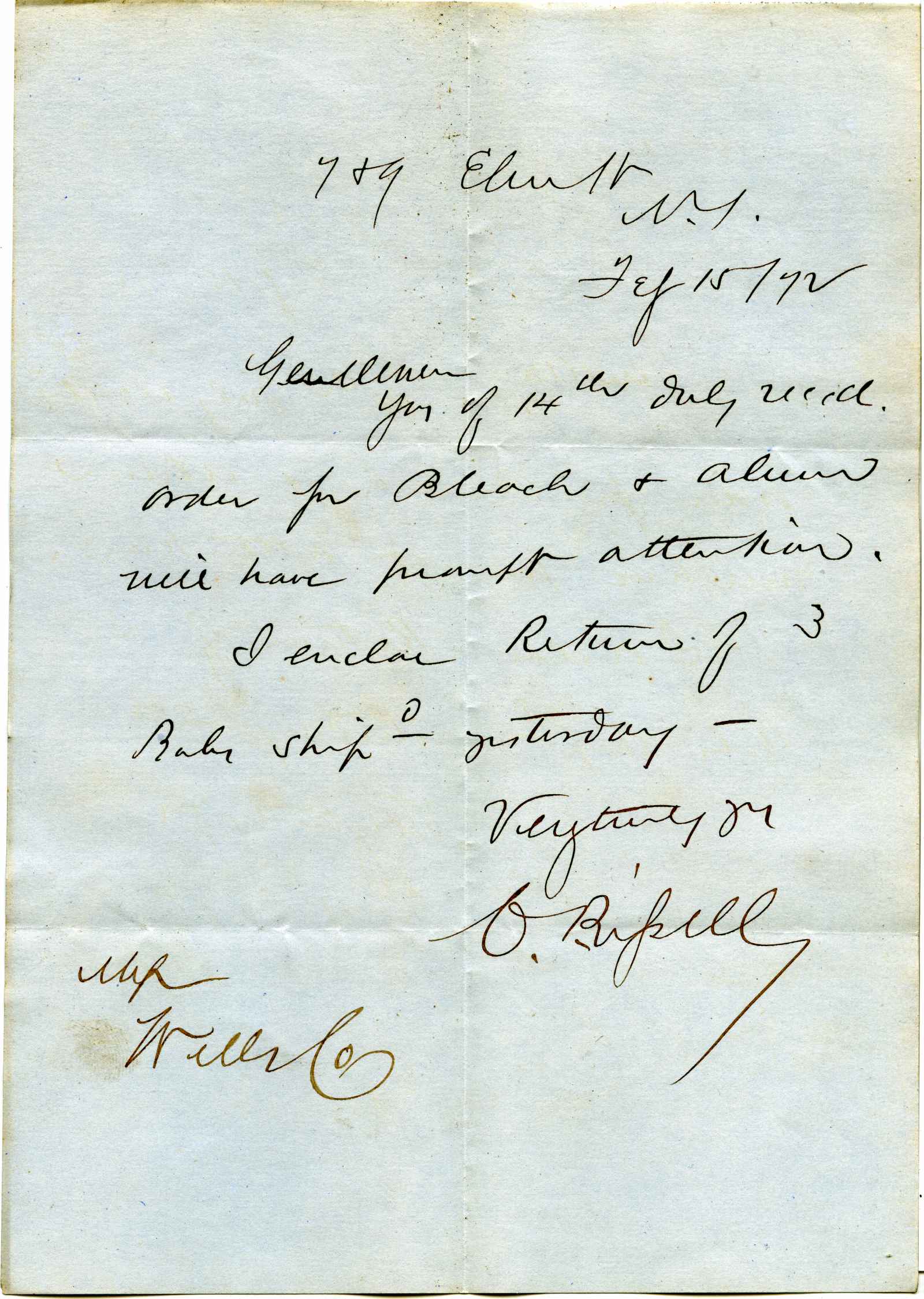 incoming correspondence to the papermaking company of Elisha Wells - circa 1870