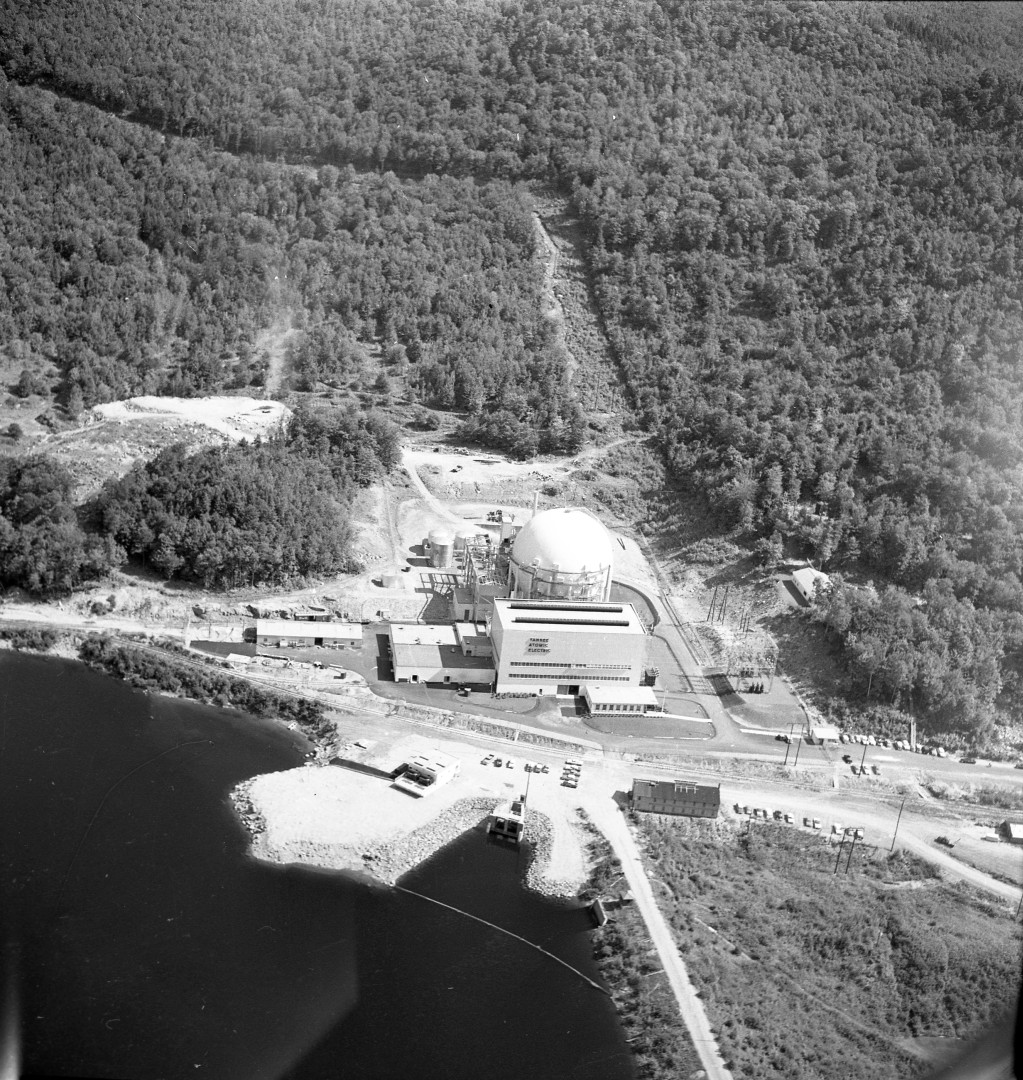 Yankee Rowe Nuclear Power Station (decommissioned) was a nuclear power plant in Rowe, Massachusetts, that operated from 1960 to 1992. The 185-megawatt electric pressurized-water plant, located on the Deerfield River in the town of Rowe in western Massachusetts, right on the border of Readsboro, Vermont, permanently shut down on February 26, 1992, after more than 31 years of producing electricity for New England electric consumers. Most of the men and women who worked either in the plant or during the decommissioning efforts referred to the site as "Yankee-Rowe" or simply "Rowe", to avoid confusion with Vermont Yankee, another nuclear power station located in nearby Vernon, Vermont. Source: Wikipedia