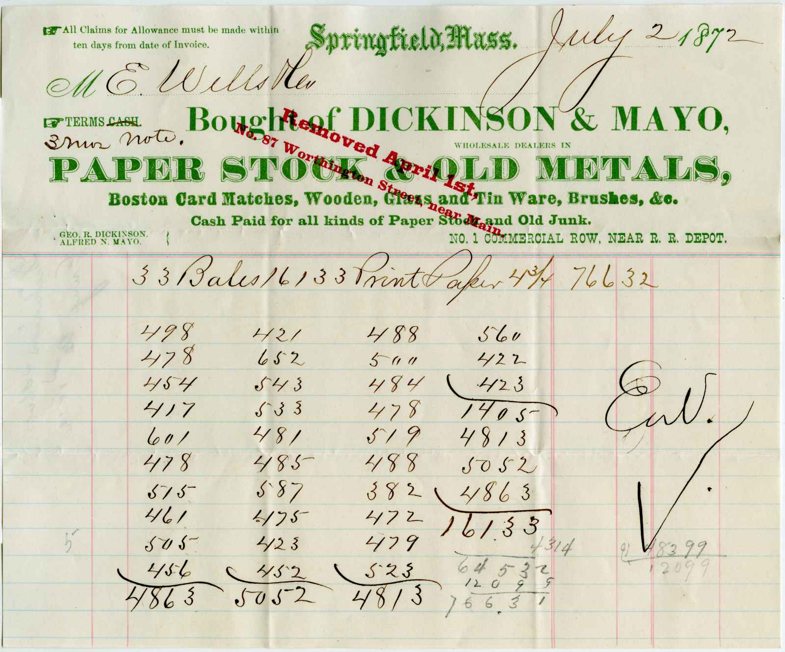 invoice; Dickinson & Mayo - Paper Stock & Old Metals - Springfield, Ma.