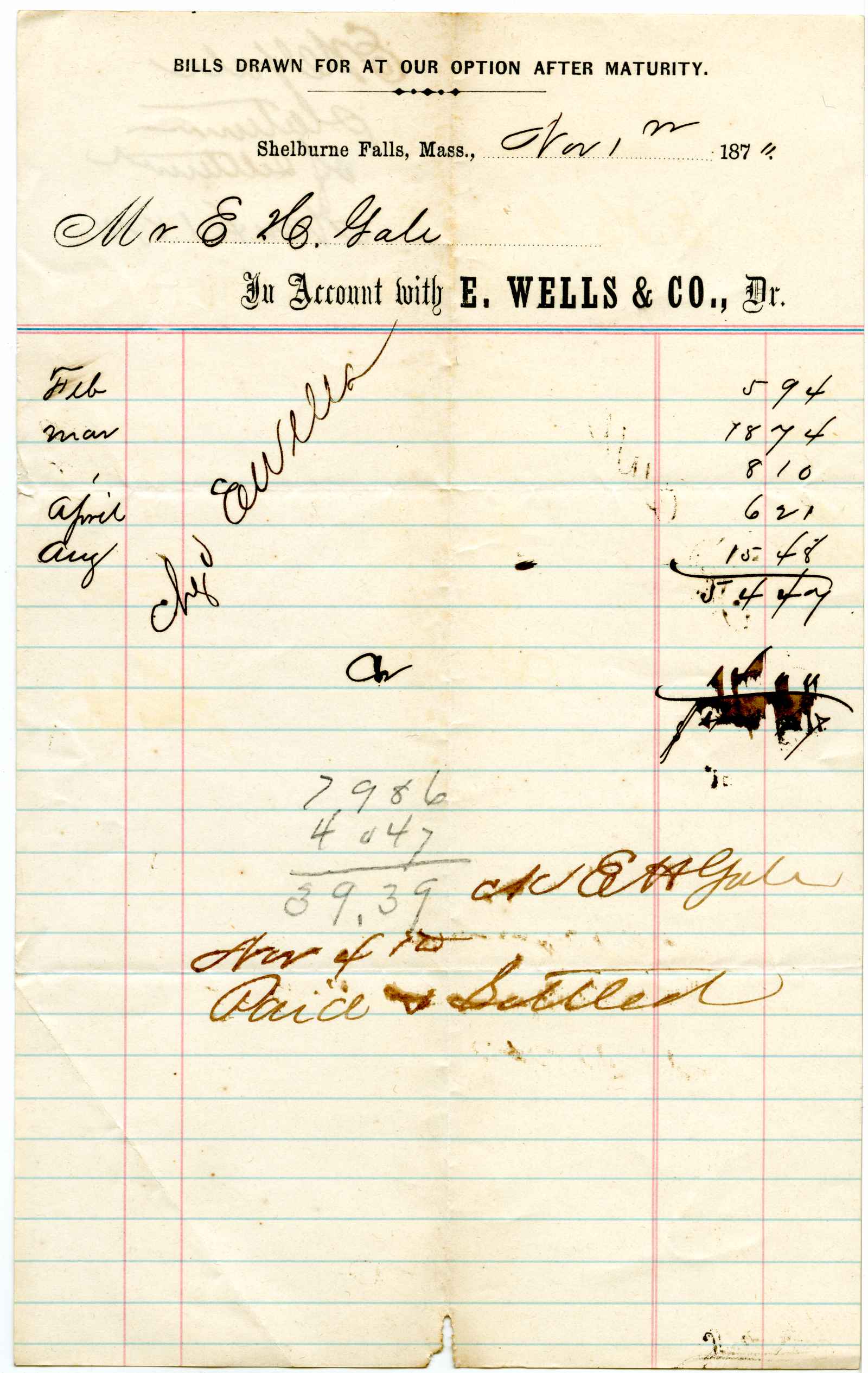 | dc.description | account; Gale, E. H. - Billing - unknown - Shelburne Falls, Ma. | |