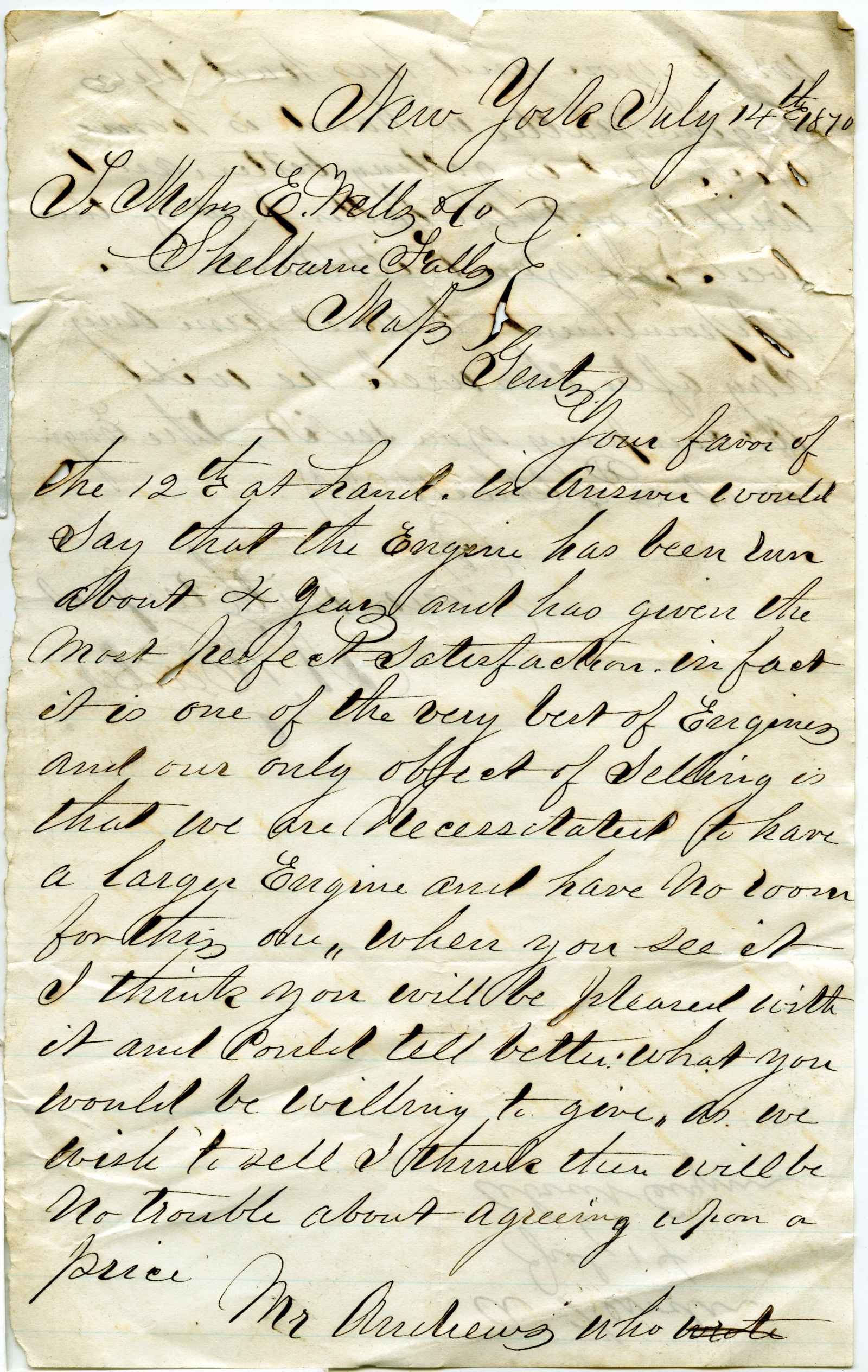 incoming correspondence to the papermaking company of Elisha Wells - circa 1870