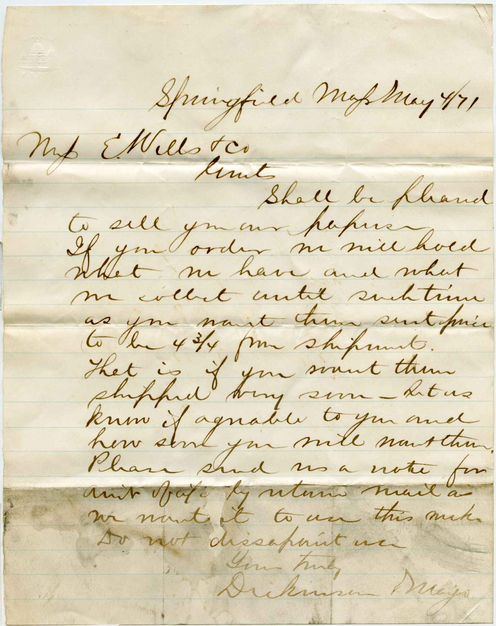 letter; Dickinson & Mayo - Paper Stock & Old Metals - Springfield, Ma.