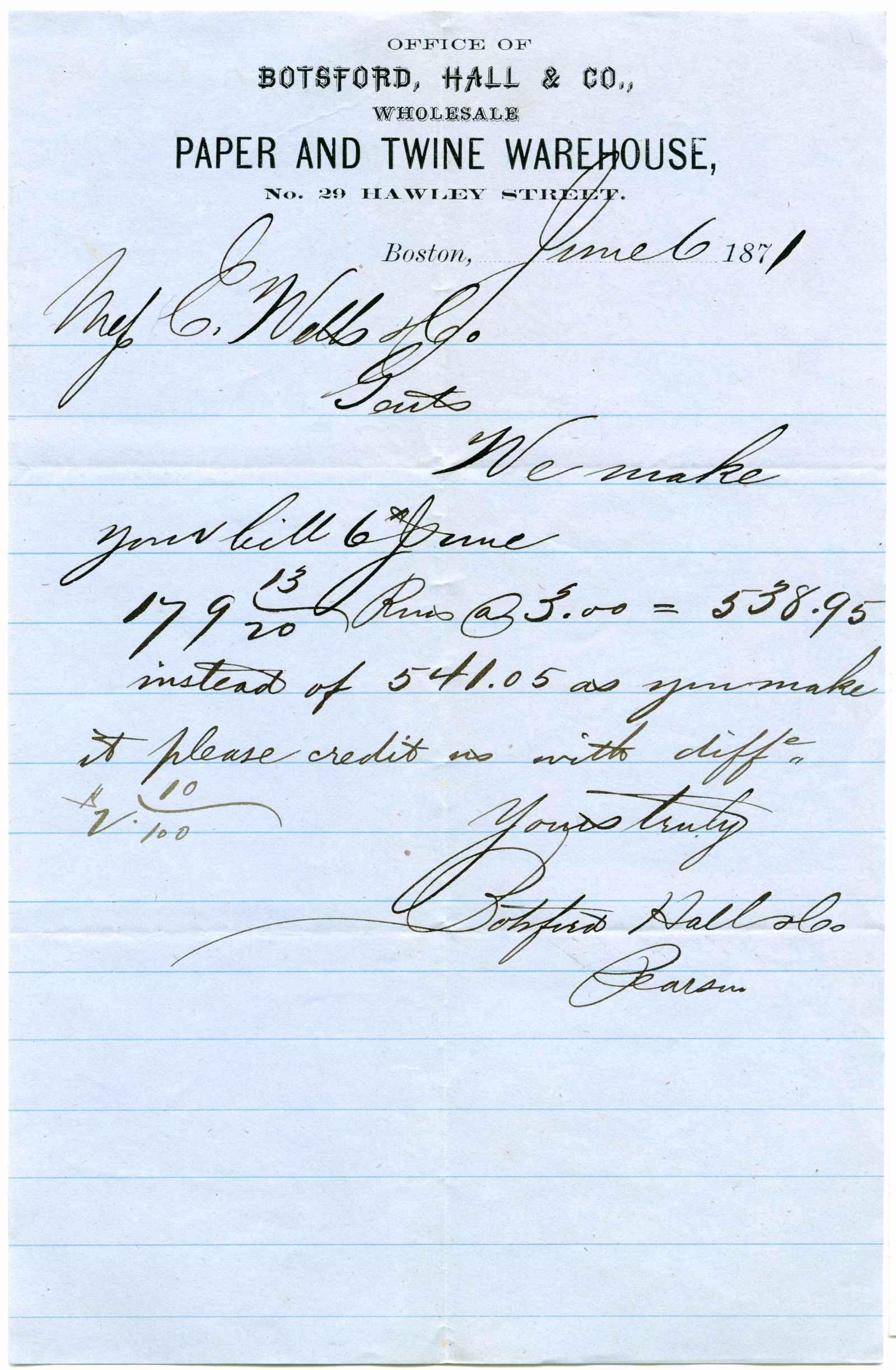 letter; Botsford, Hall & Co. - Paper & Twine - Boston