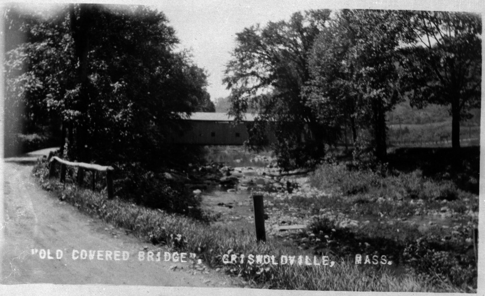 Covered bridge just north of mill rebuilt after 1869 freshet—Carried off in 1936 flood.