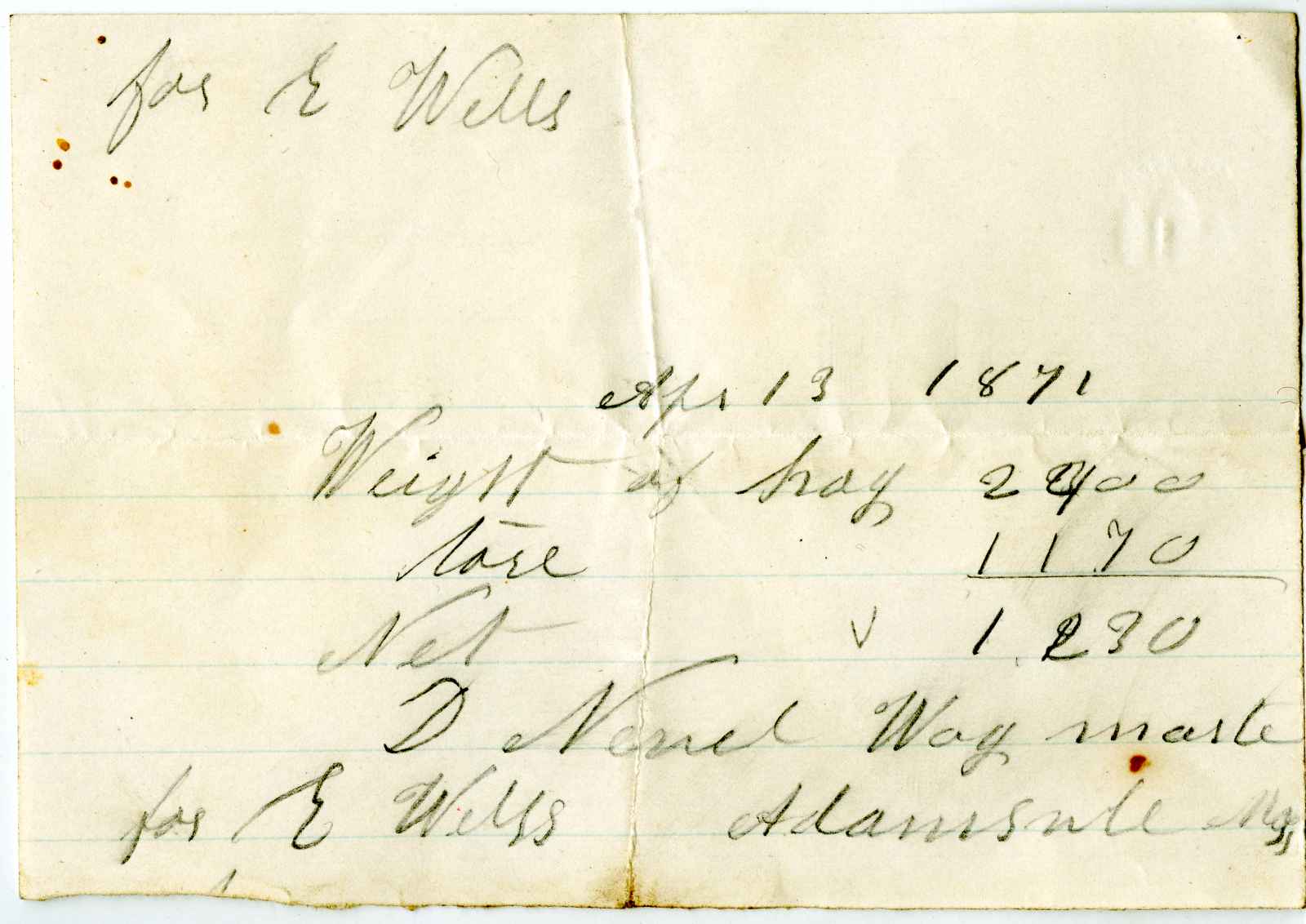 receipt; Newell, D. - Bill for hay - Adamsville, Ma.