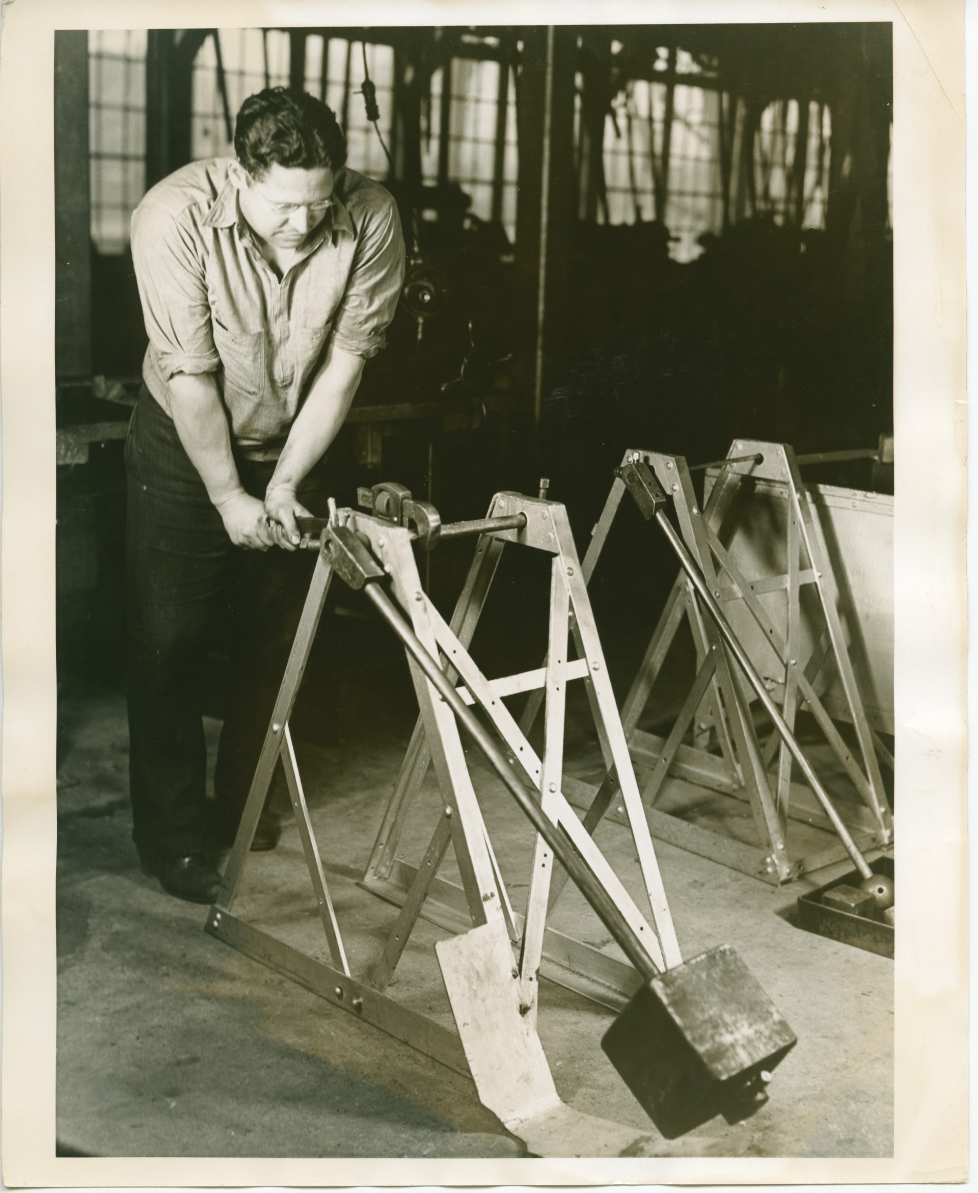 The F.E. Wells & Son company (later part of GTD) produced pipe wrenches. This photograph is demonstrating the quality assurance "stress test" for a Wells wrench. The operator appears to be testing an F.E. Wells & Son company brand wrench, rather than one with a GTD logo. GTD acquired the company in 1917 and shortly after discontinued all products not related to thread cutting. This photo is likely WW1 era or earlier.