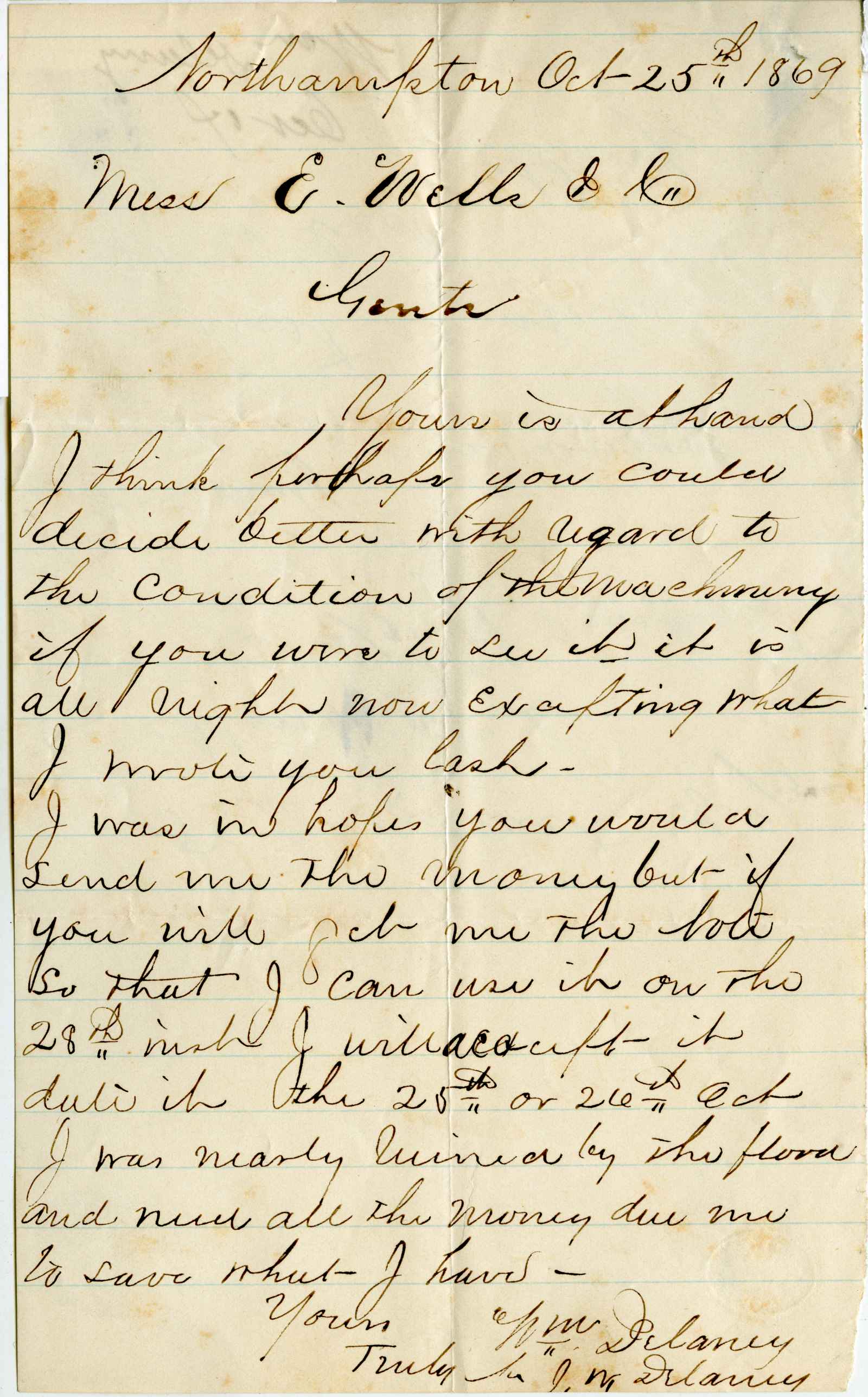 letter; Delaney, William - Machinery Sales - Northampton, Ma.
