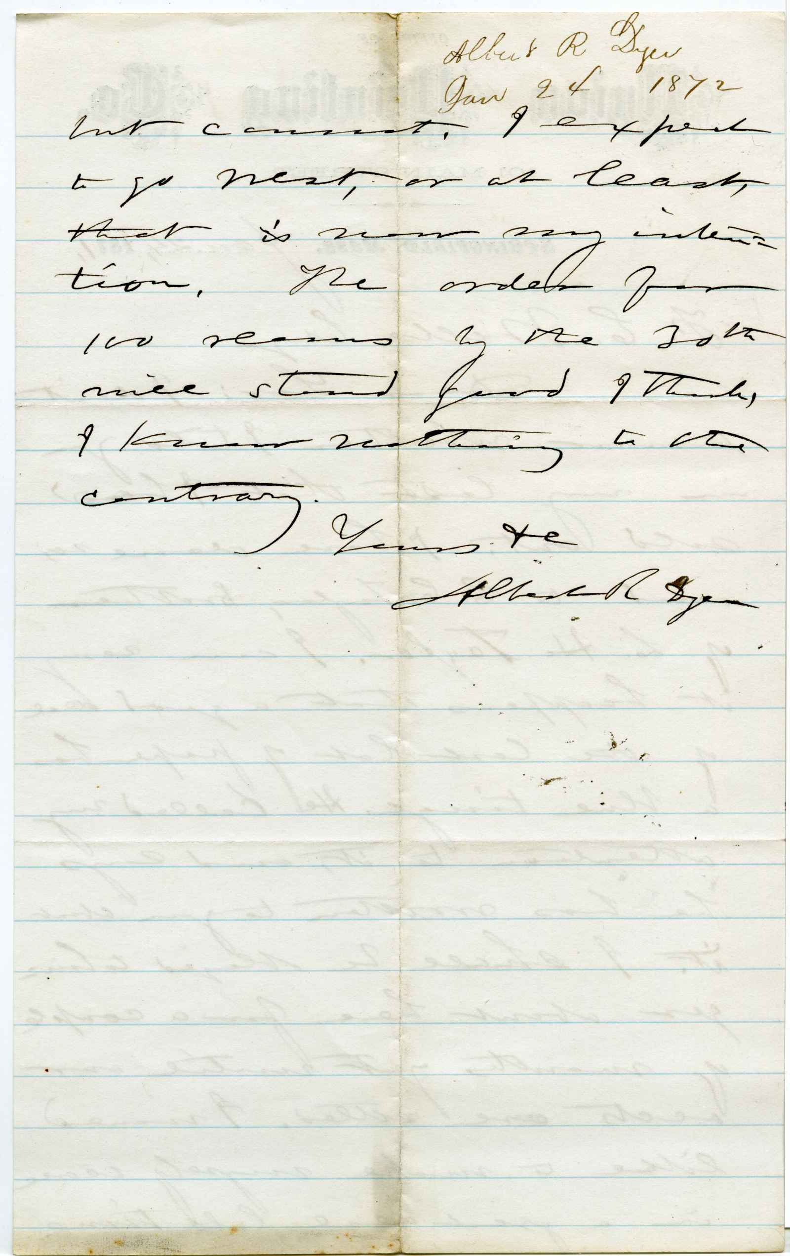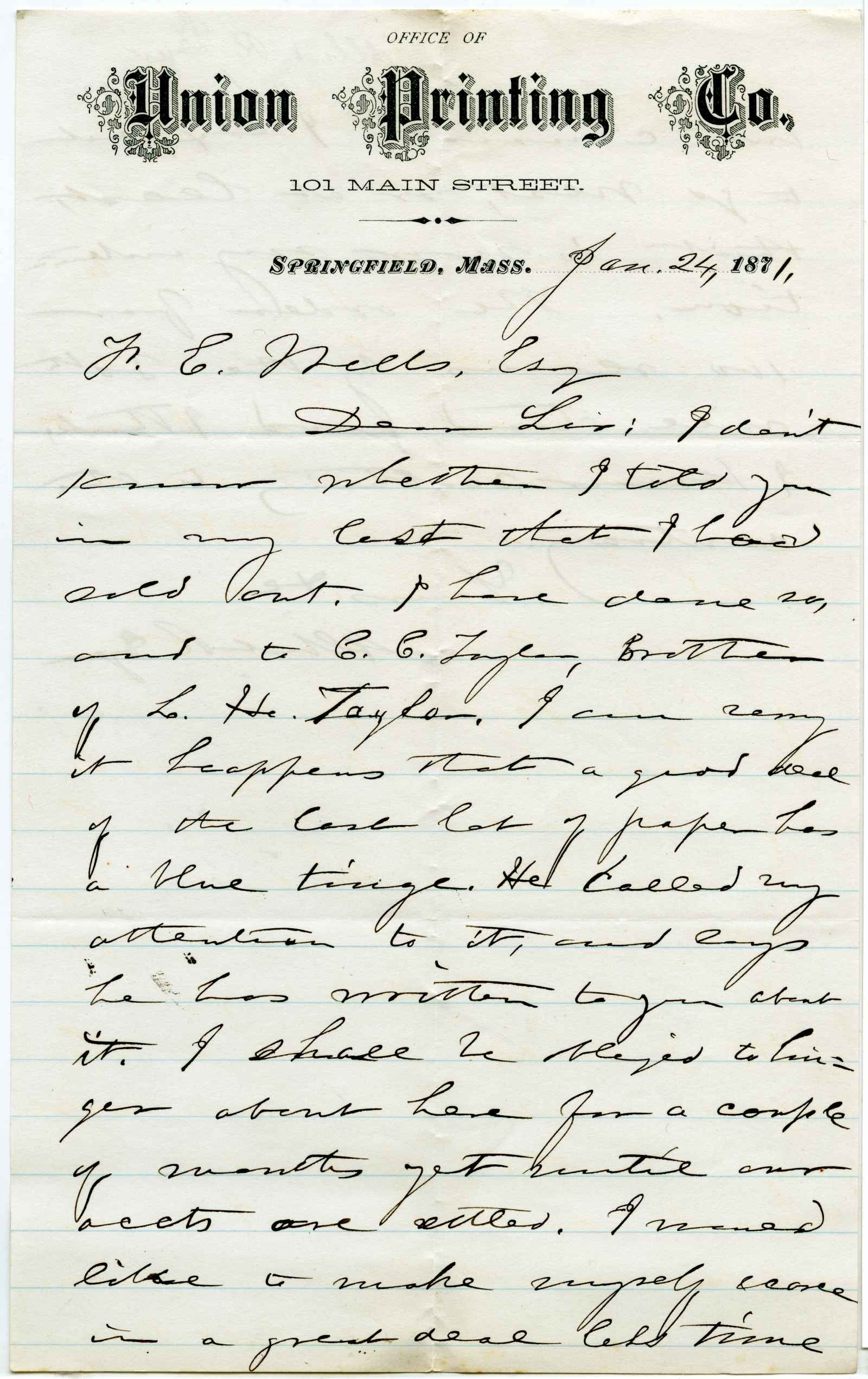 letter; Union Printing Co. - Business letter - Springfield, Ma.