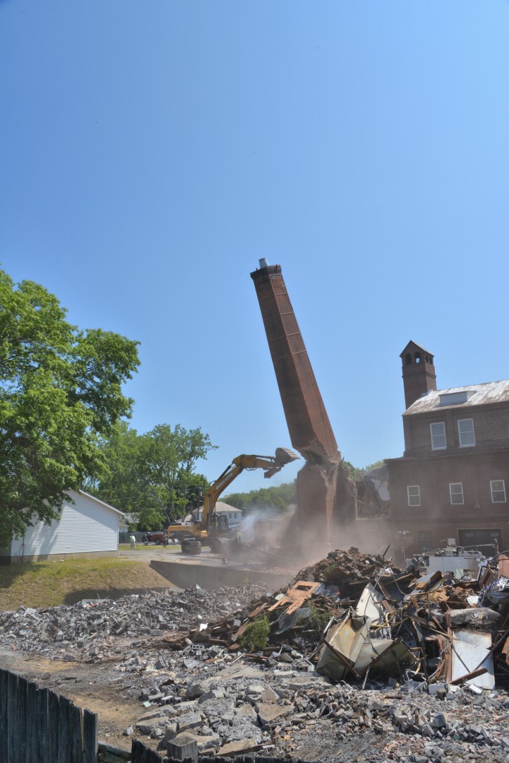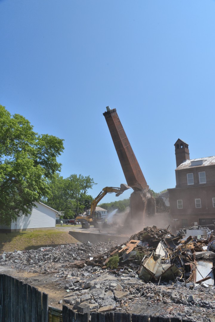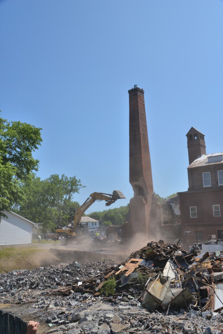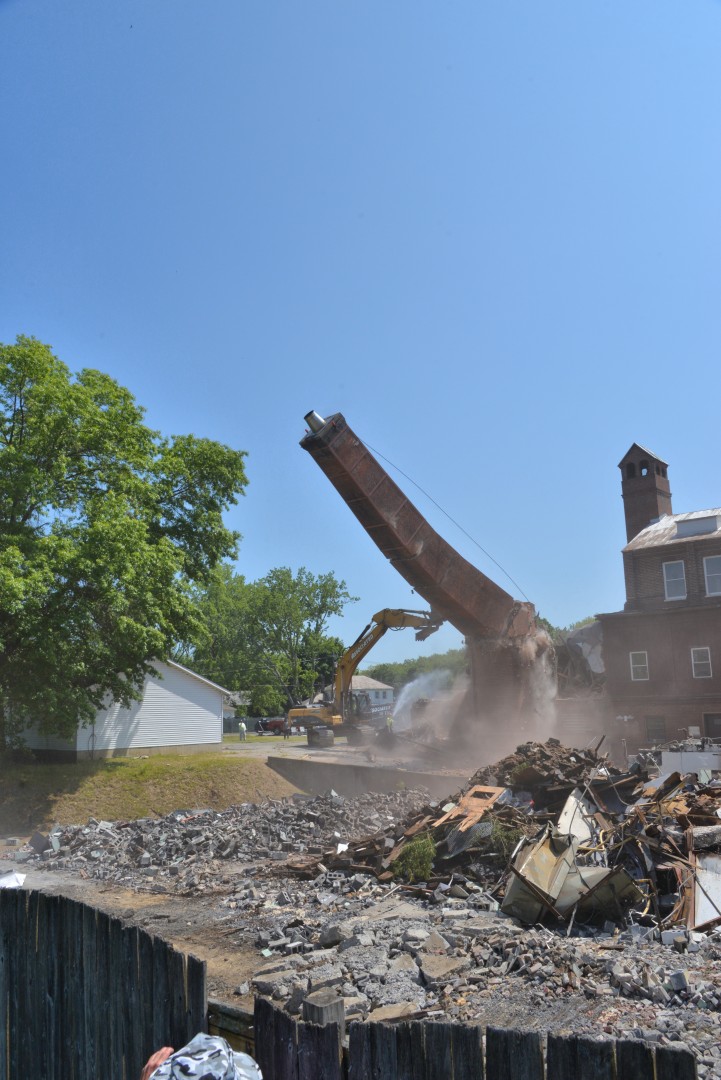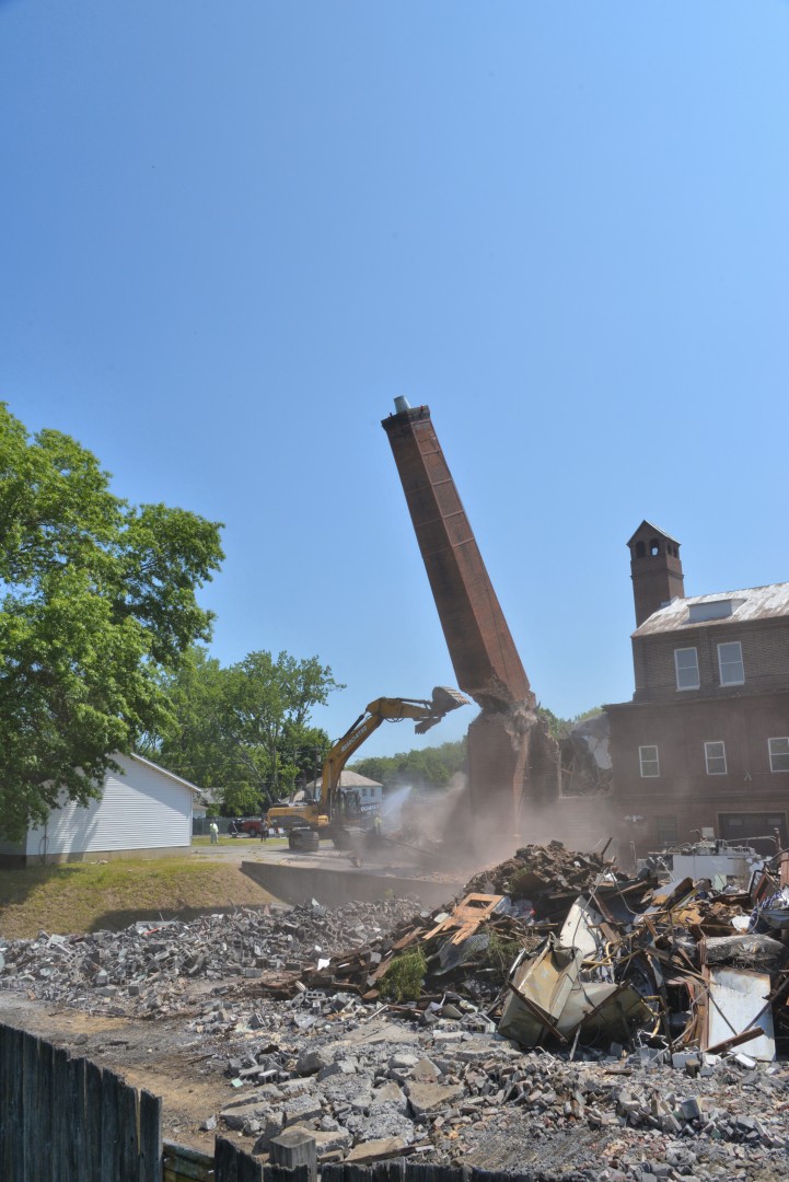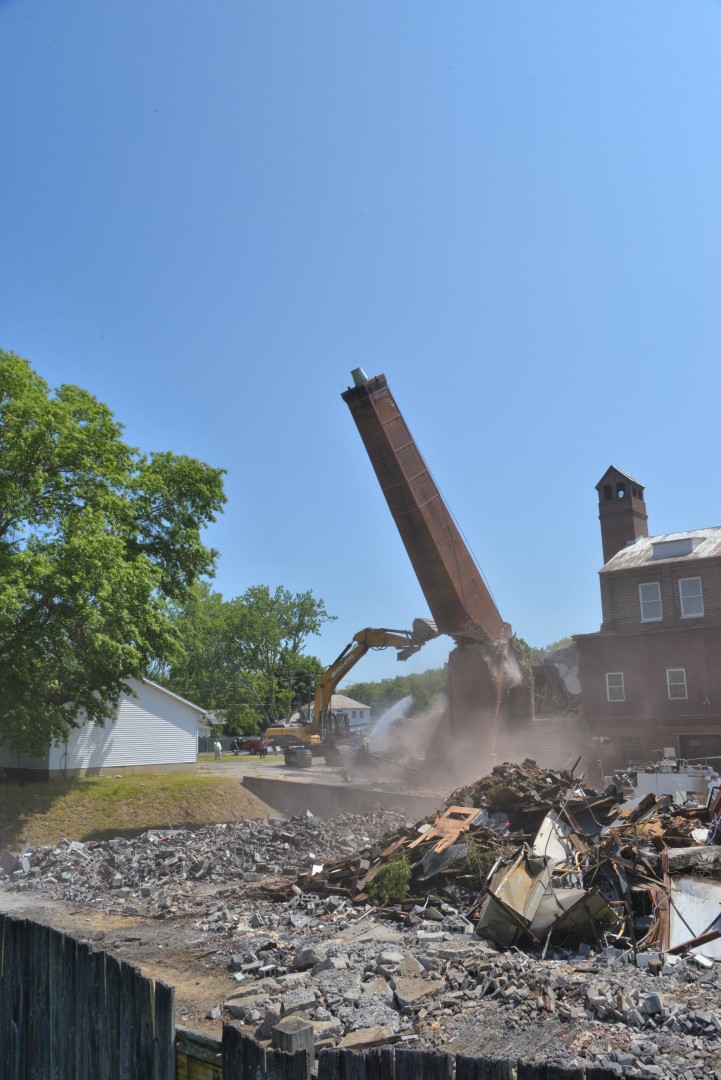 The 80-foot high, Farren Memorial Hospital Physical Plant chimney is demolished. This presentation is organized as a 30 image slide show with details of each view available in the viewer's sidebar.