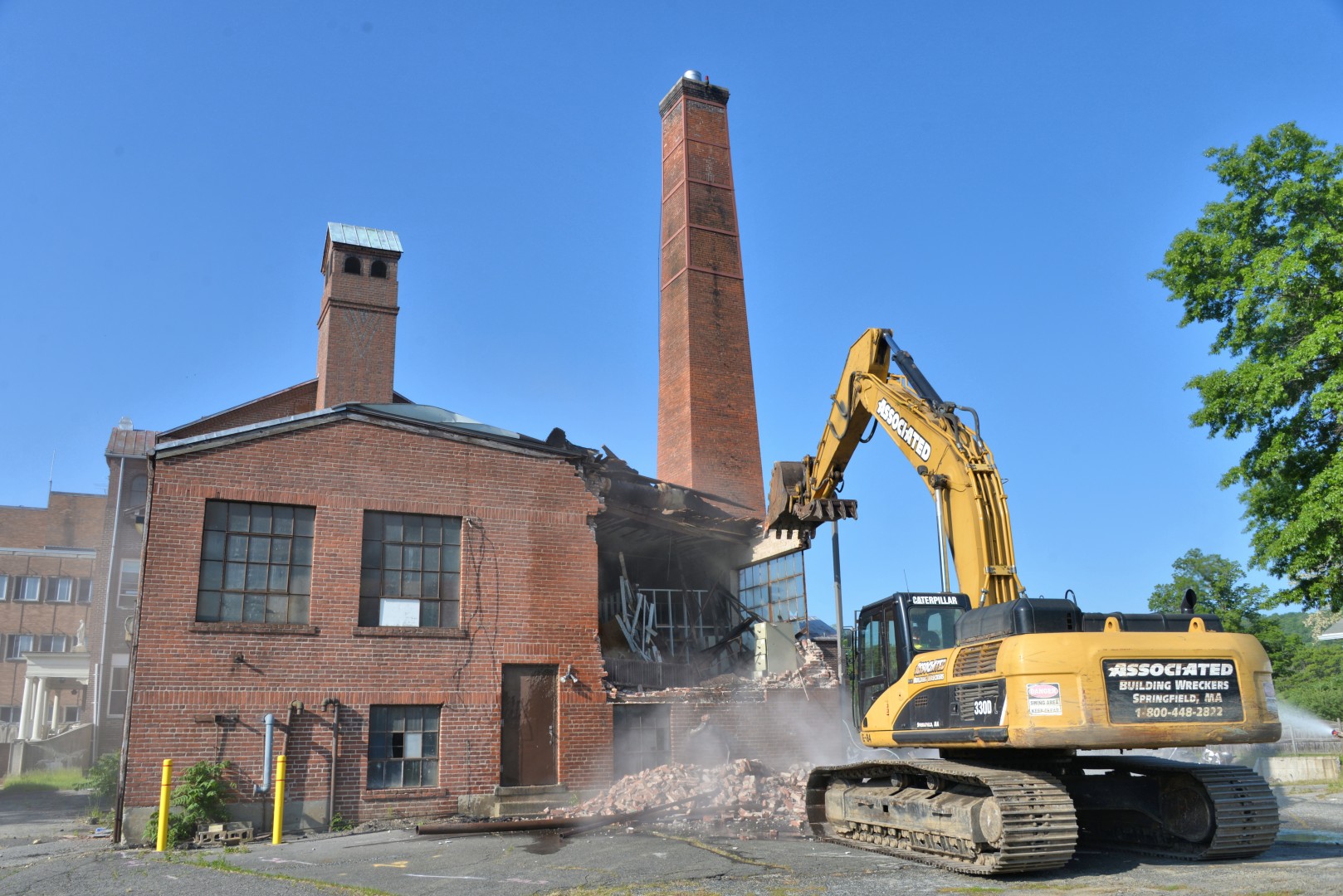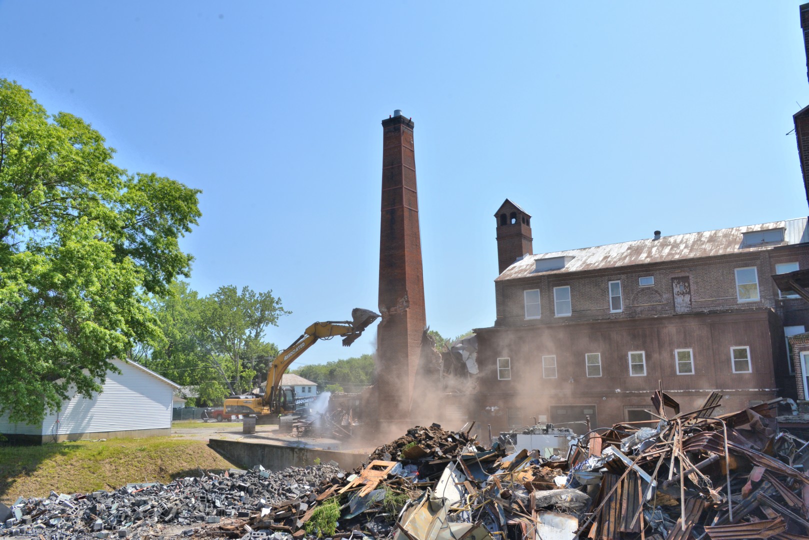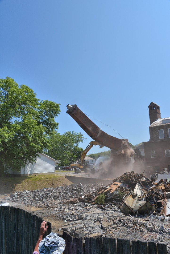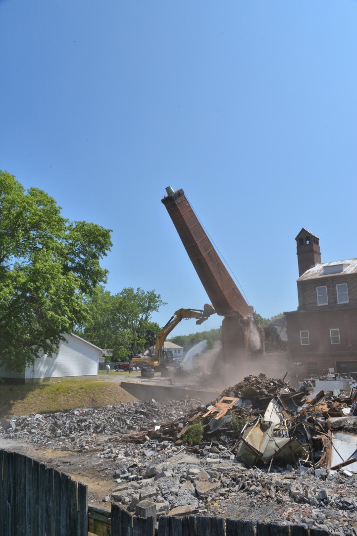 The 80-foot high, Farren Memorial Hospital Physical Plant chimney is demolished. This presentation is organized as a 30 image slide show with details of each view available in the viewer's sidebar.