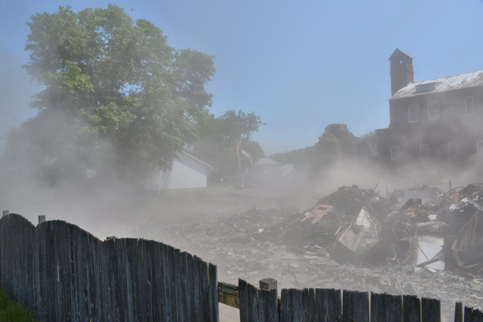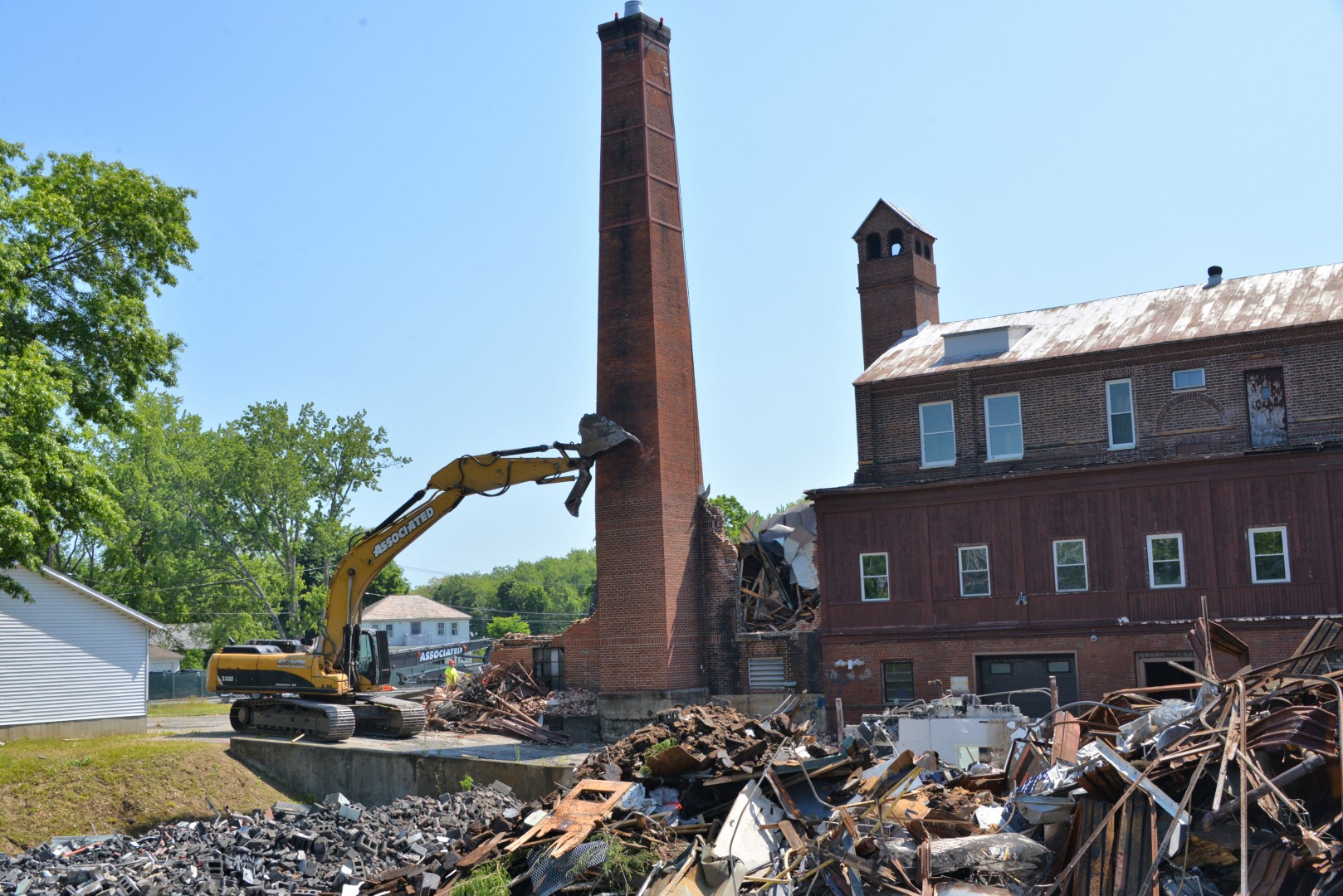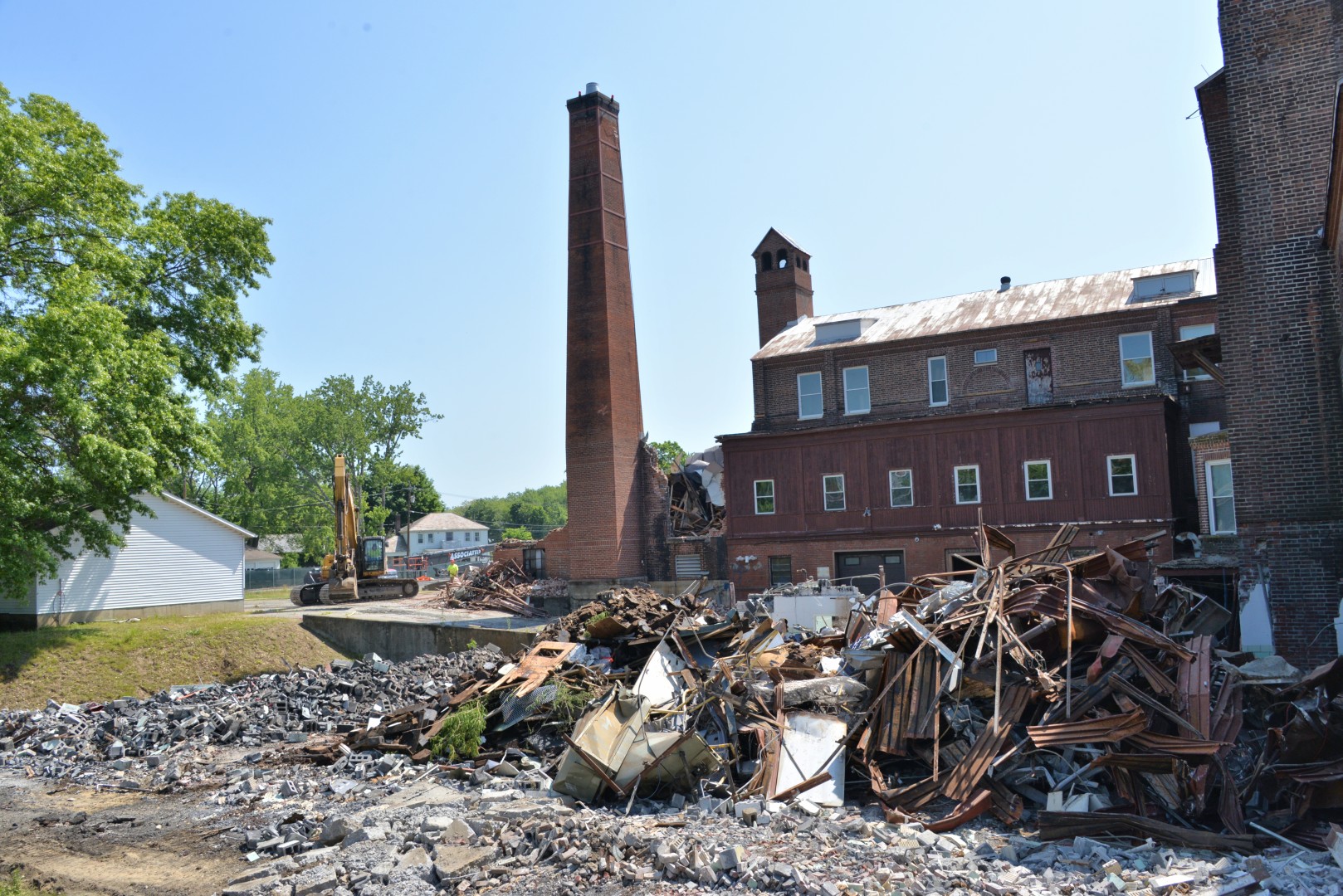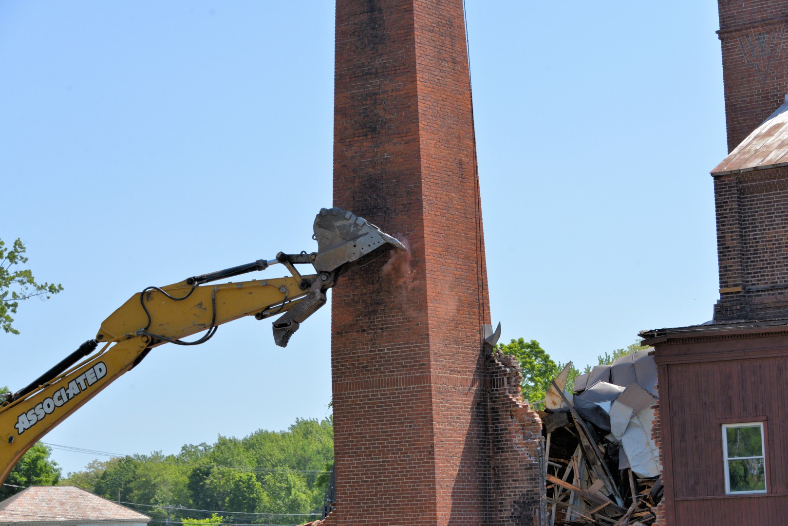 The 80-foot high, Farren Memorial Hospital Physical Plant chimney is demolished. This presentation is organized as a 30 image slide show with details of each view available in the viewer's sidebar.