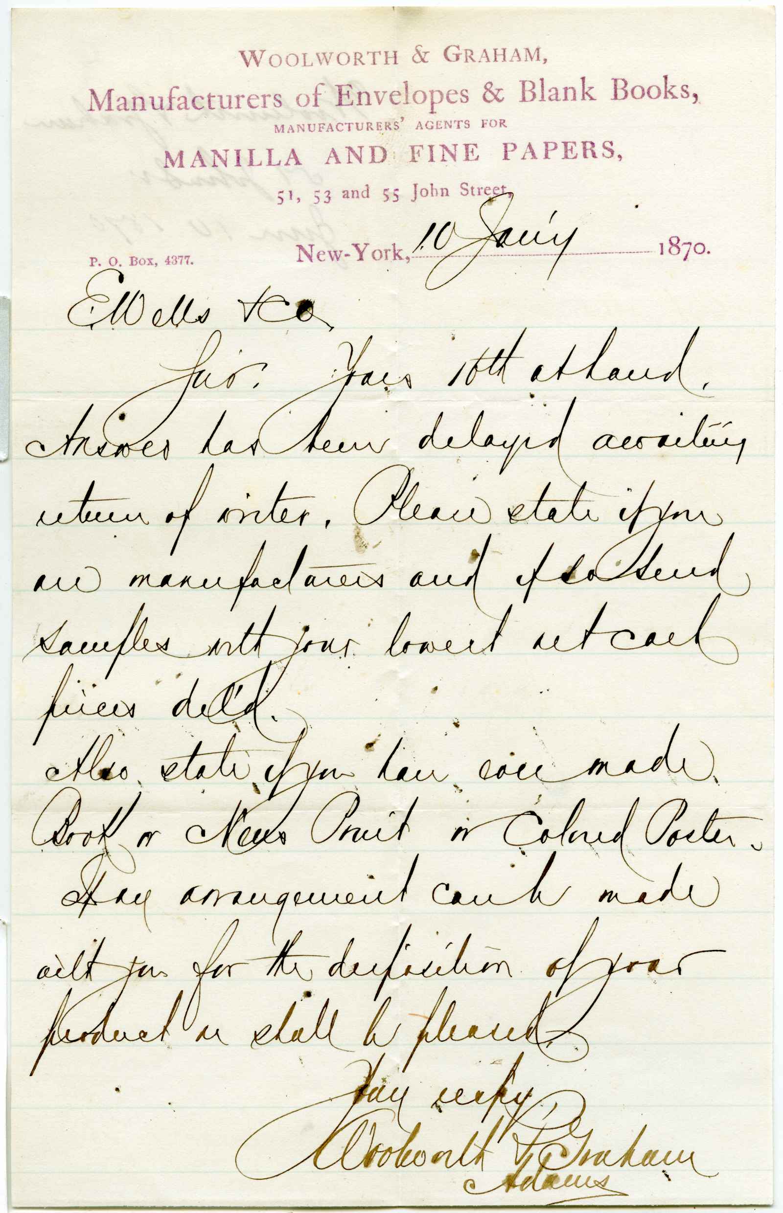 letter; Woolworth & Graham - Manufacturers of Envelopes and Blank Books - N.Y.