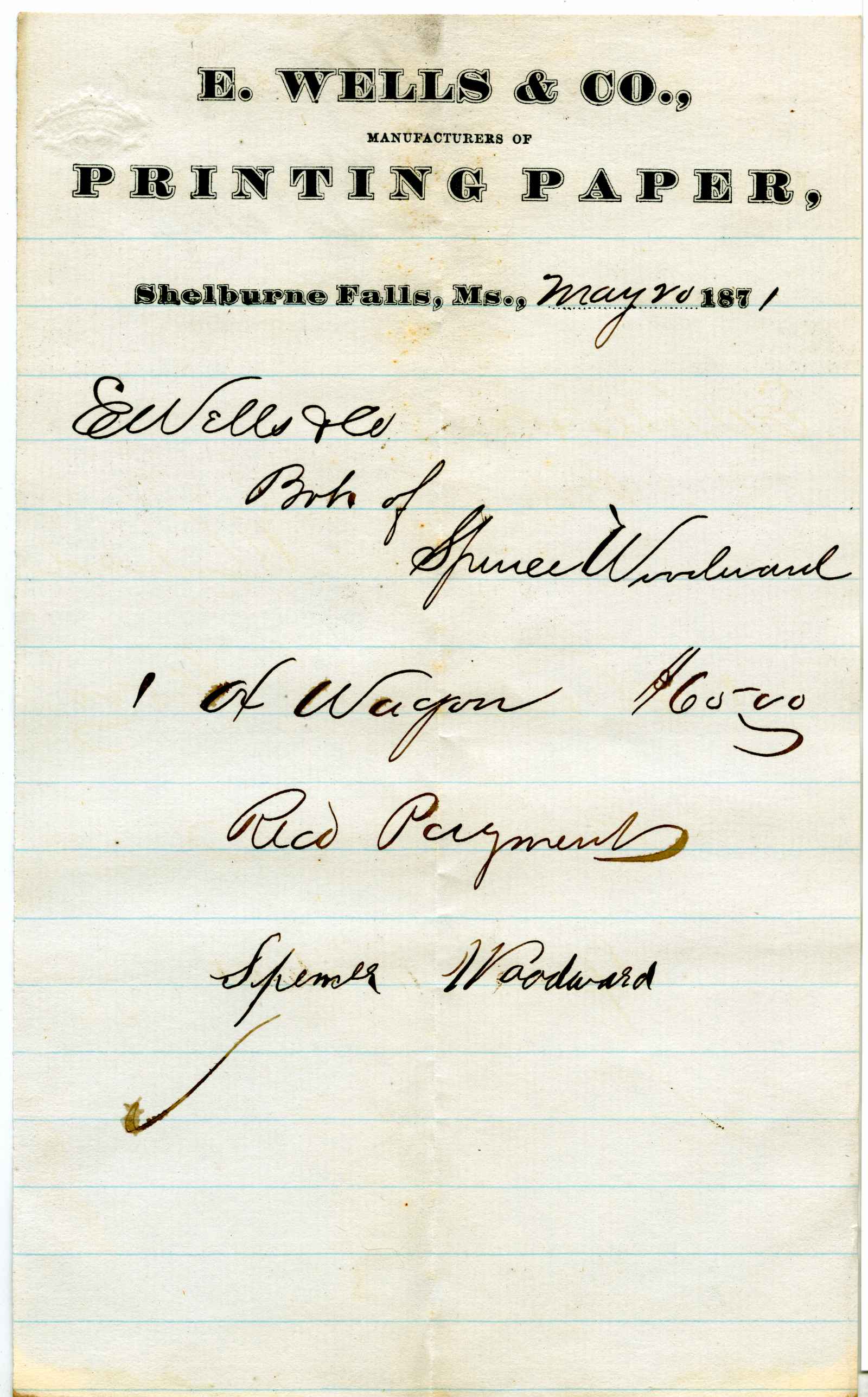 | dc.description | receipt; Wells, E. & Co. - Manufacturer of Printing Paper - Shelburne Falls, Ma. | |