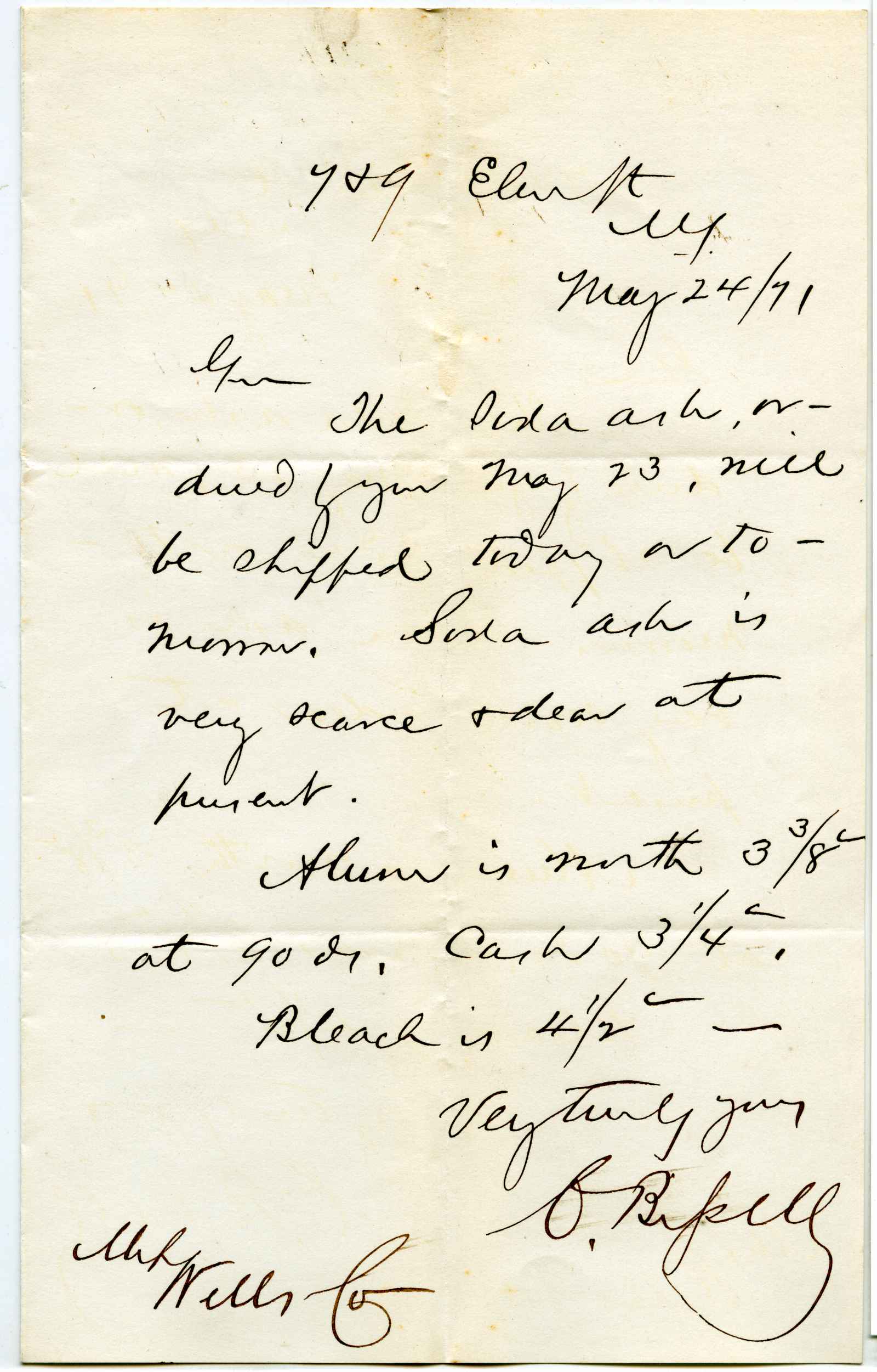 incoming correspondence to the papermaking company of Elisha Wells - circa 1870