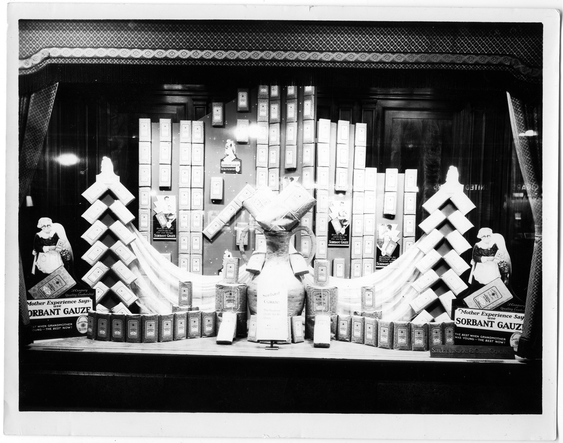 Sibley, Lindsay & Curr Store - ca. 1930 - Store window showing Sorbant Gauze products