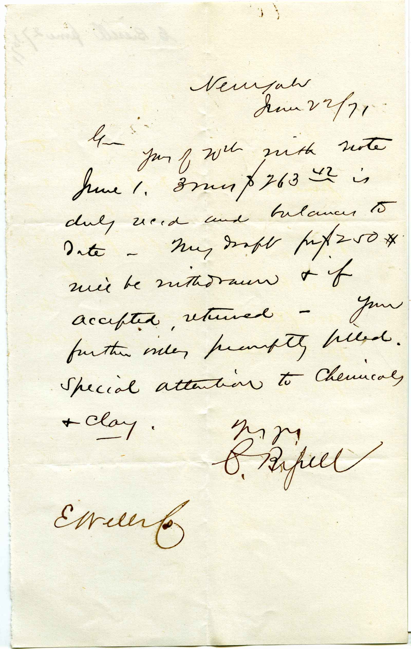 incoming correspondence to the papermaking company of Elisha Wells - circa 1870