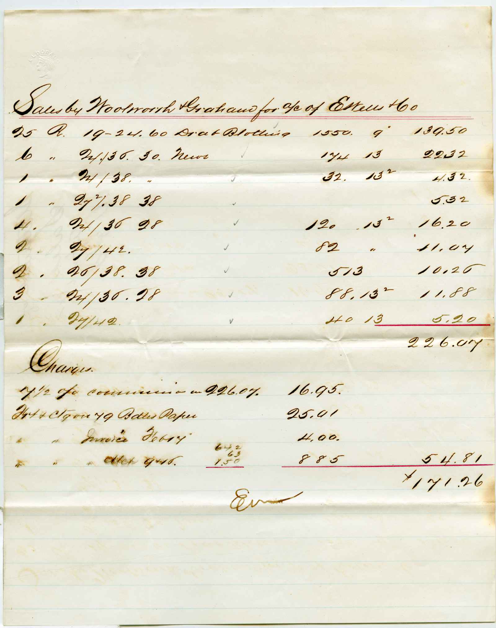account; sales summary from Woolworth & Graham to E. Wells & Co.