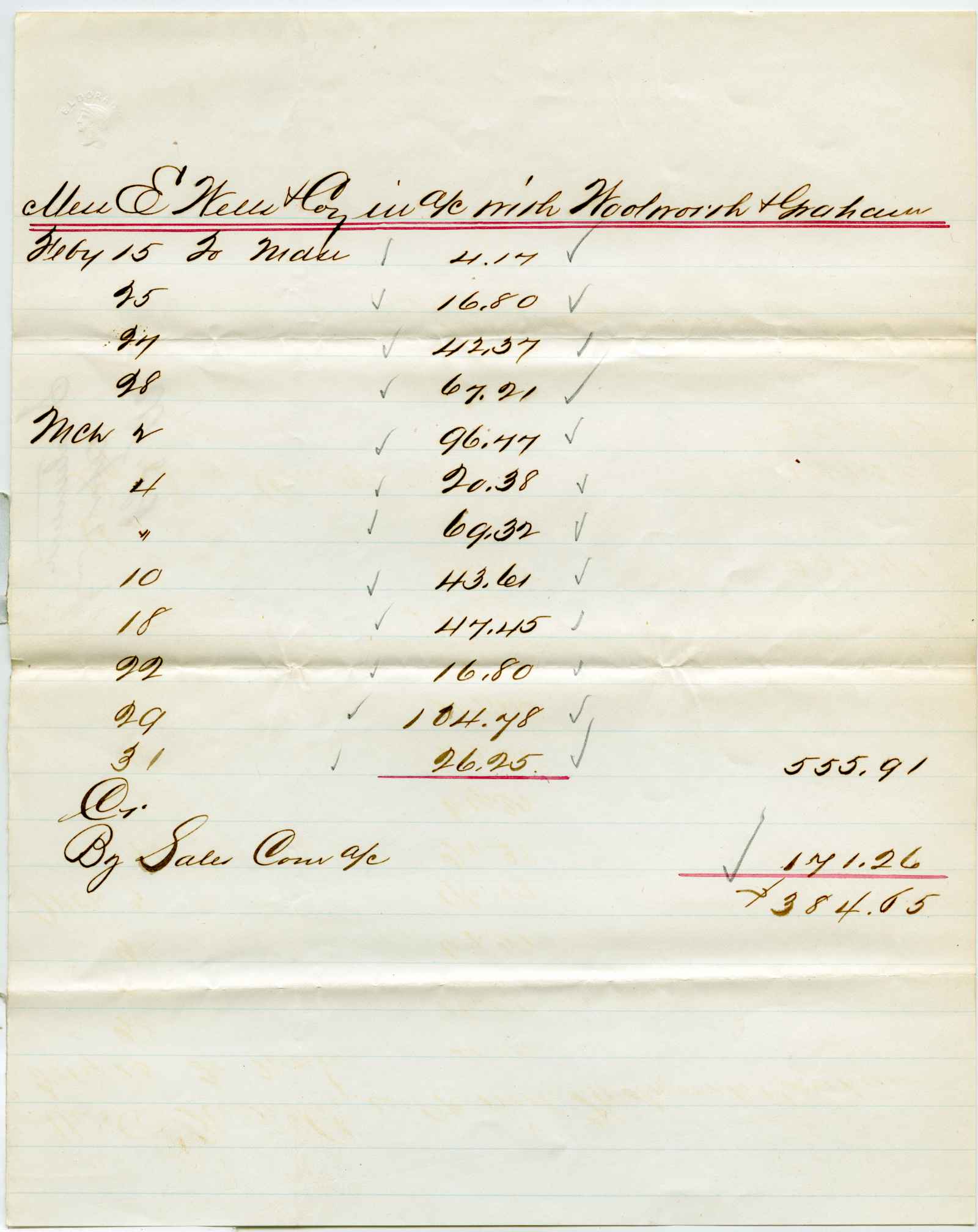 | dc.description | account; sales summary from Woolworth & Graham to E. Wells & Co. | |