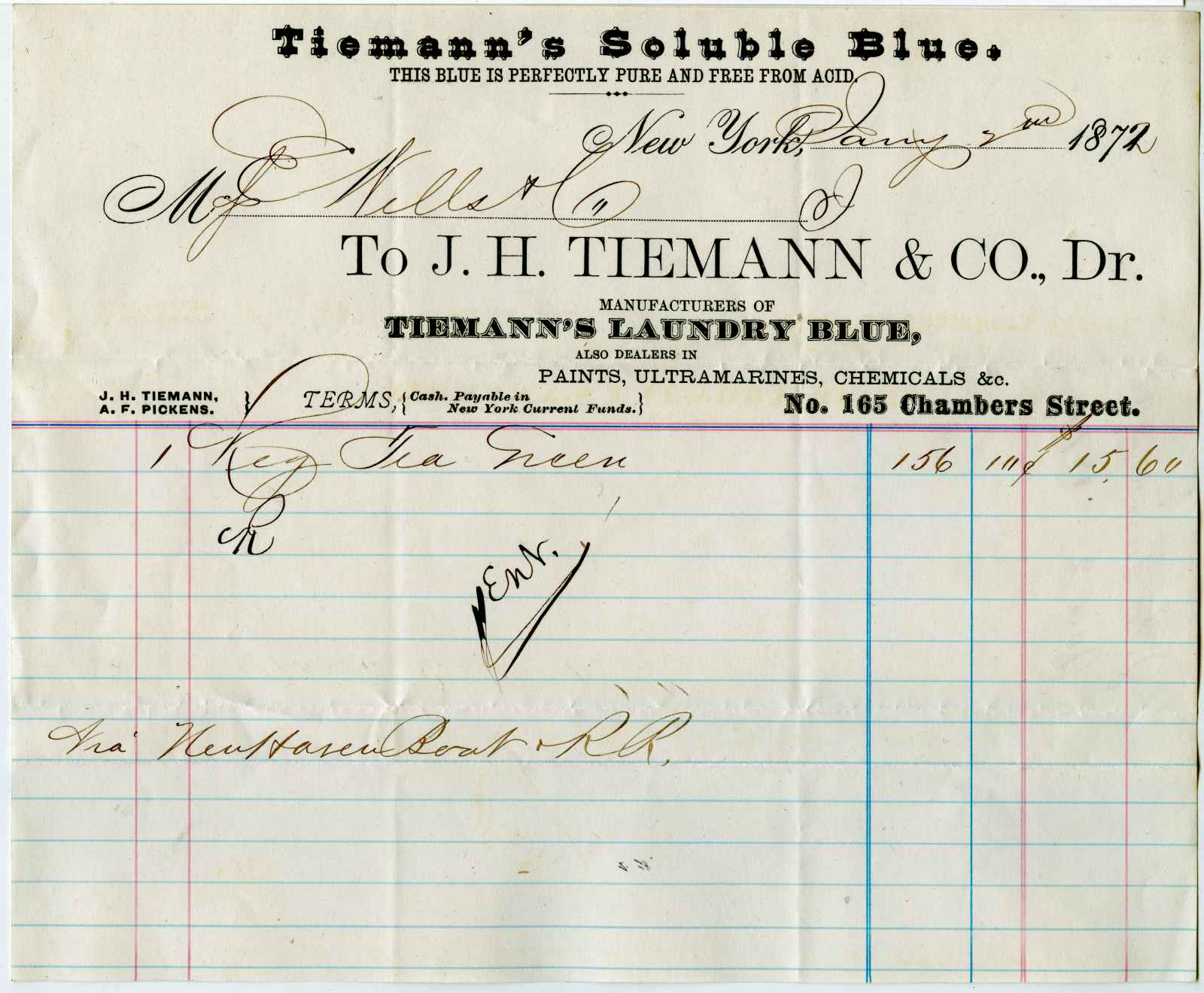 | dc.description | invoice; Tieman, J. H. & Co. - Paints, Ultramarines, Chemicals, &c. - N.Y. | |
