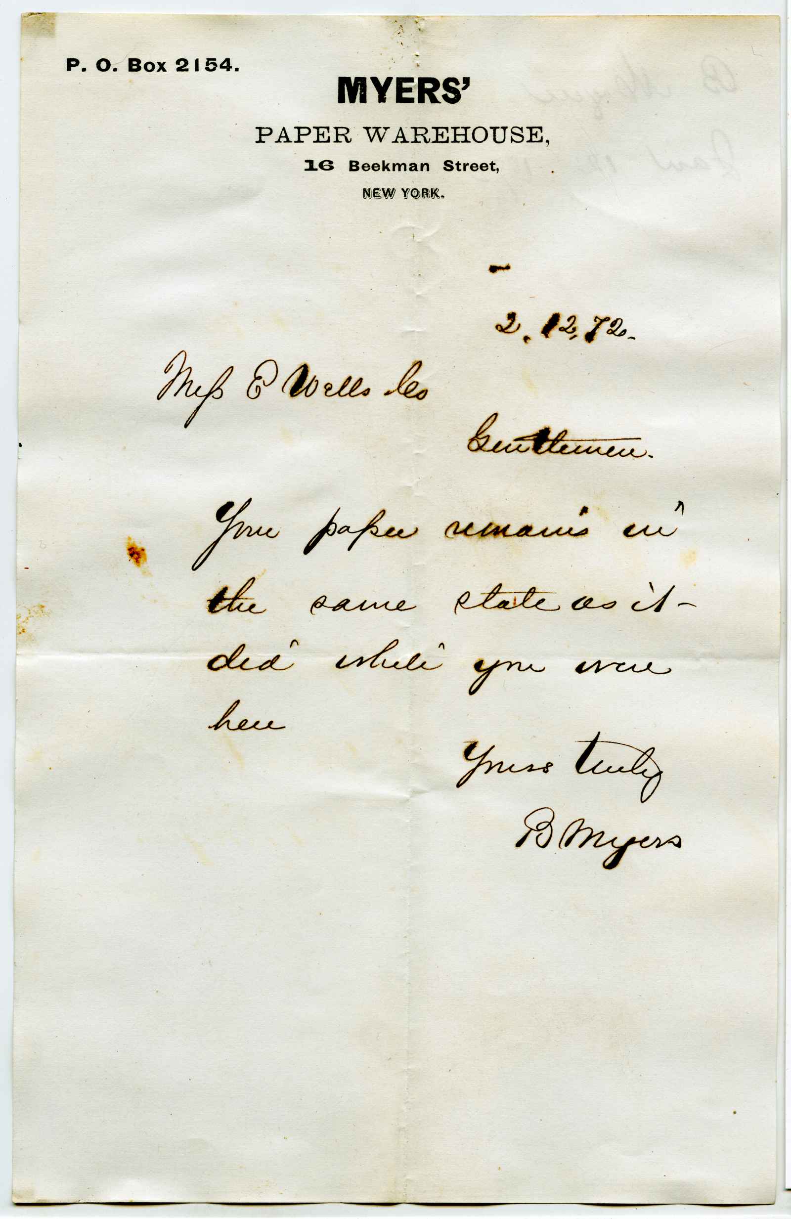letter; Myers, B. - €” Paper Warehouse - N.Y.