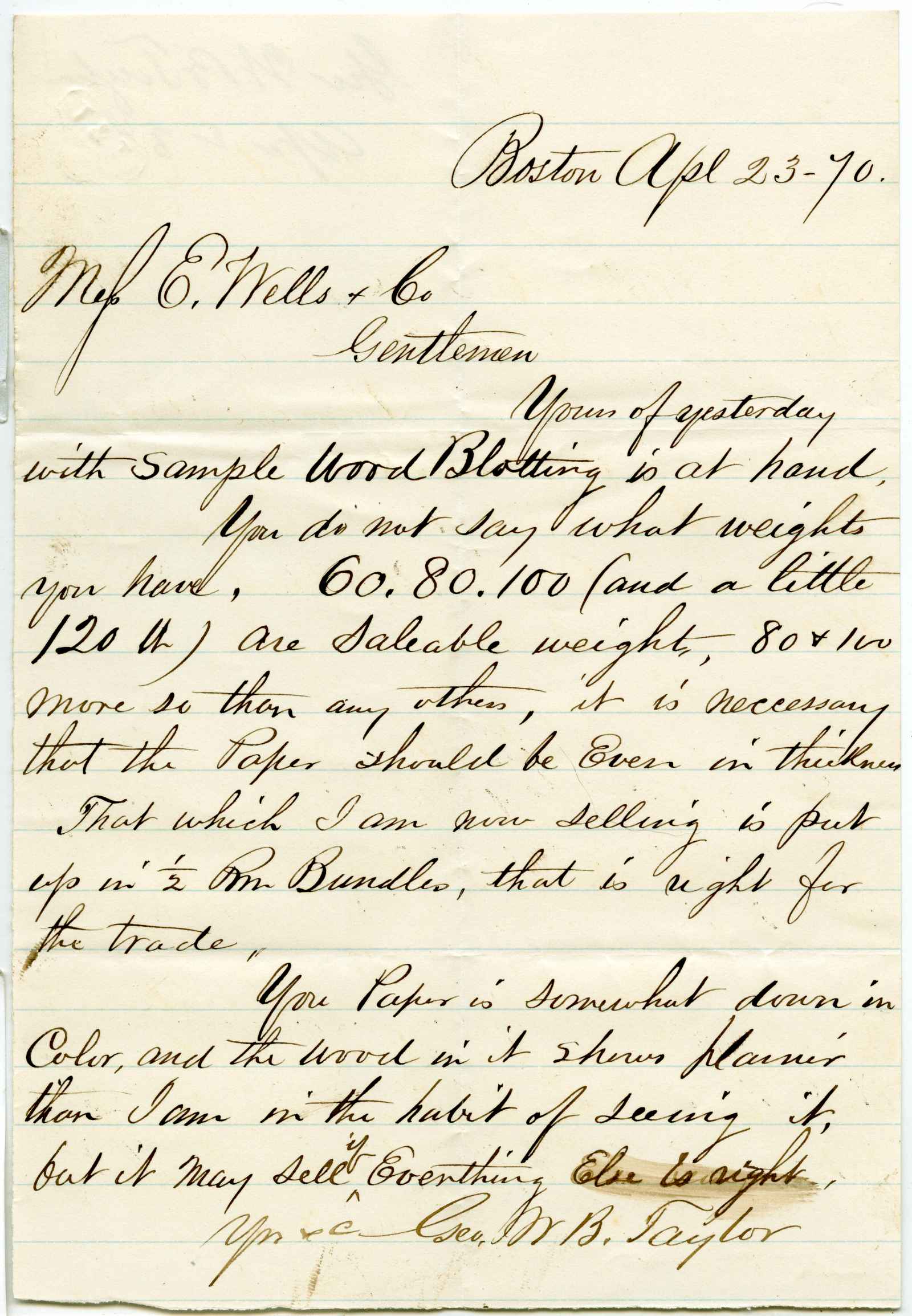 letter; Taylor, George, W. B. - Paper & Printing Inks - Boston