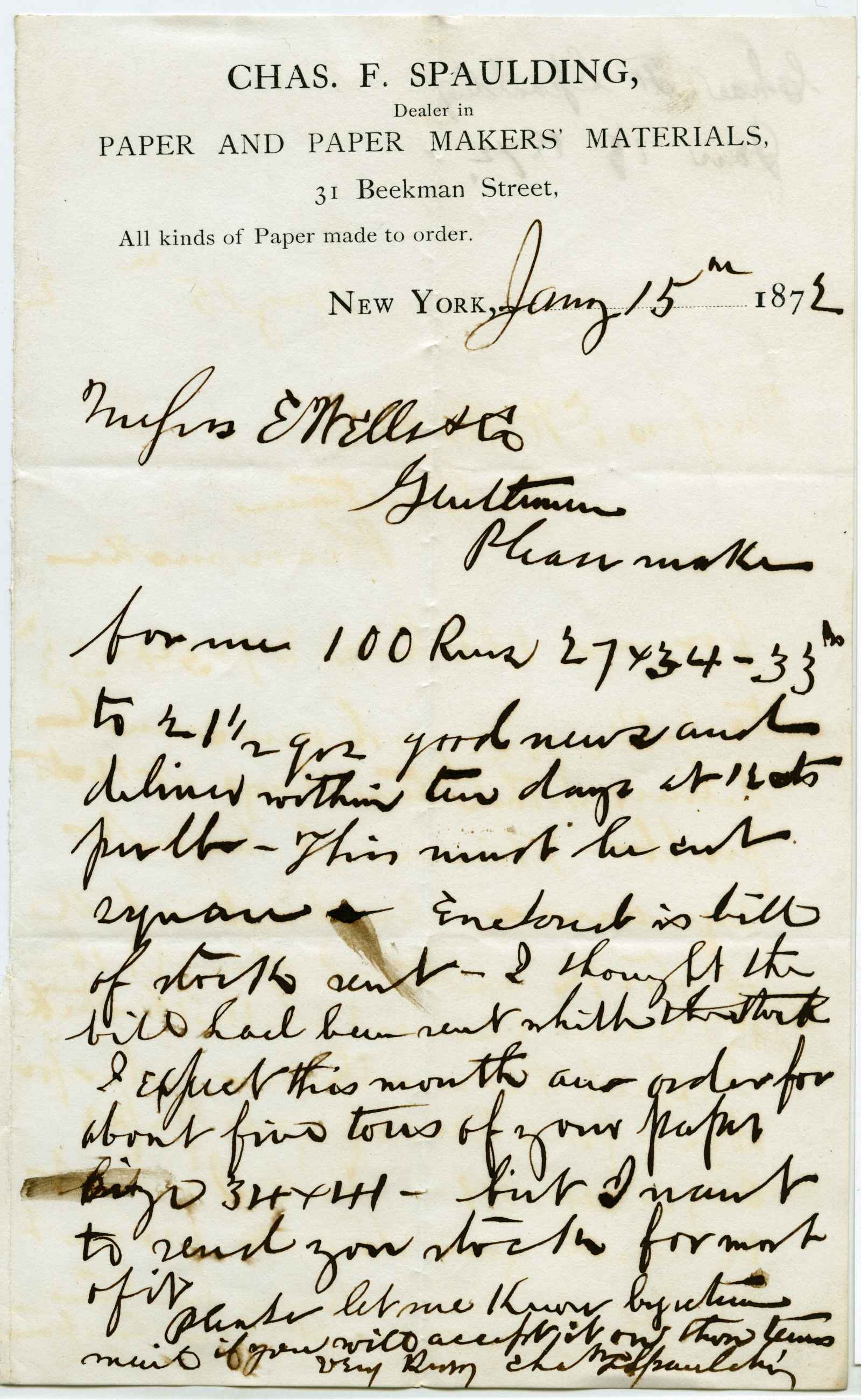 letter; Spaulding, Charles F. & Co. - Paper & Paper Makers' Materials - N.Y.
