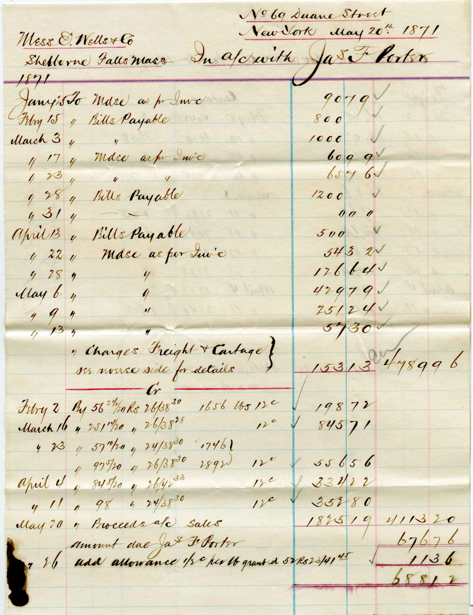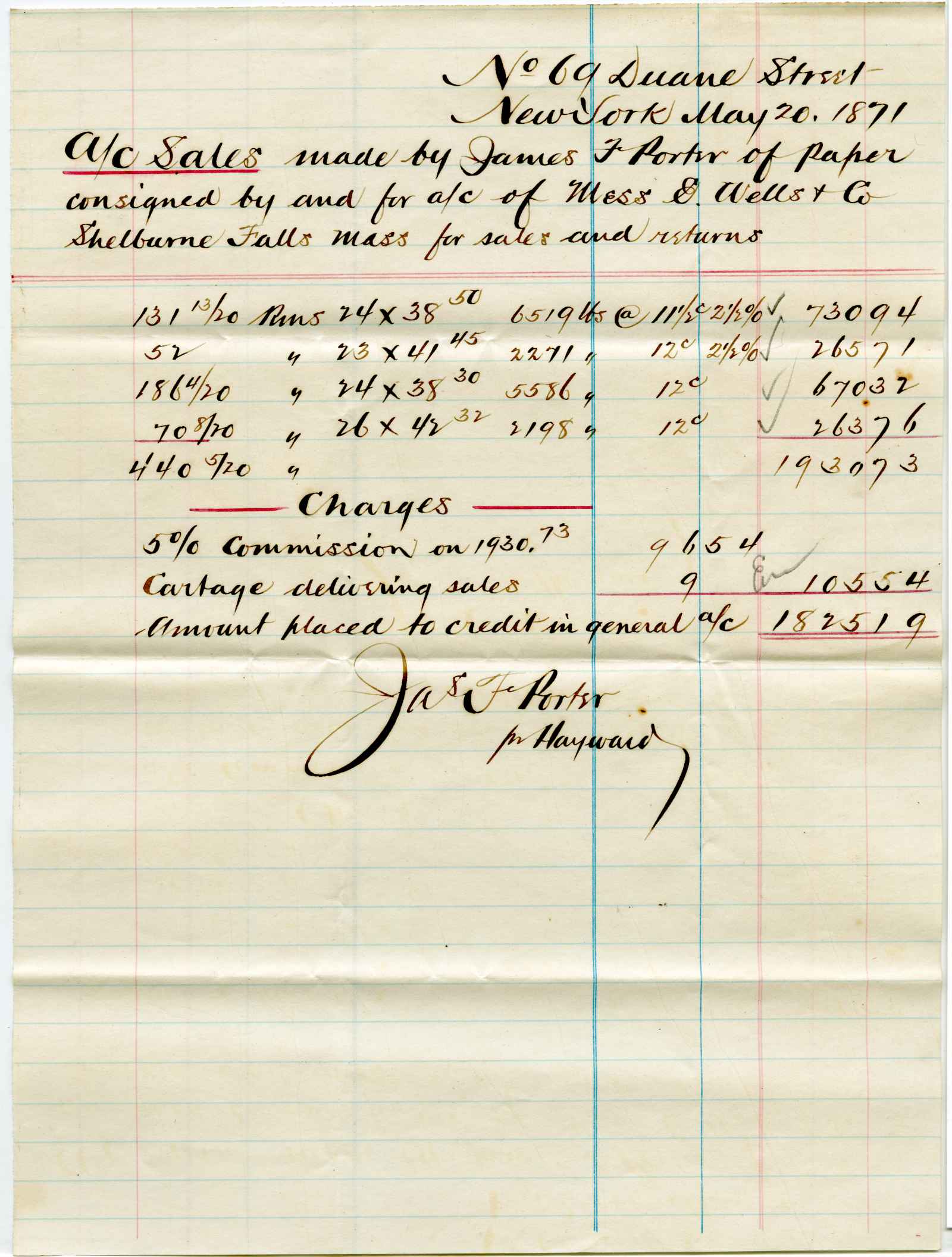 incoming correspondence to the papermaking company of Elisha Wells - circa 1870