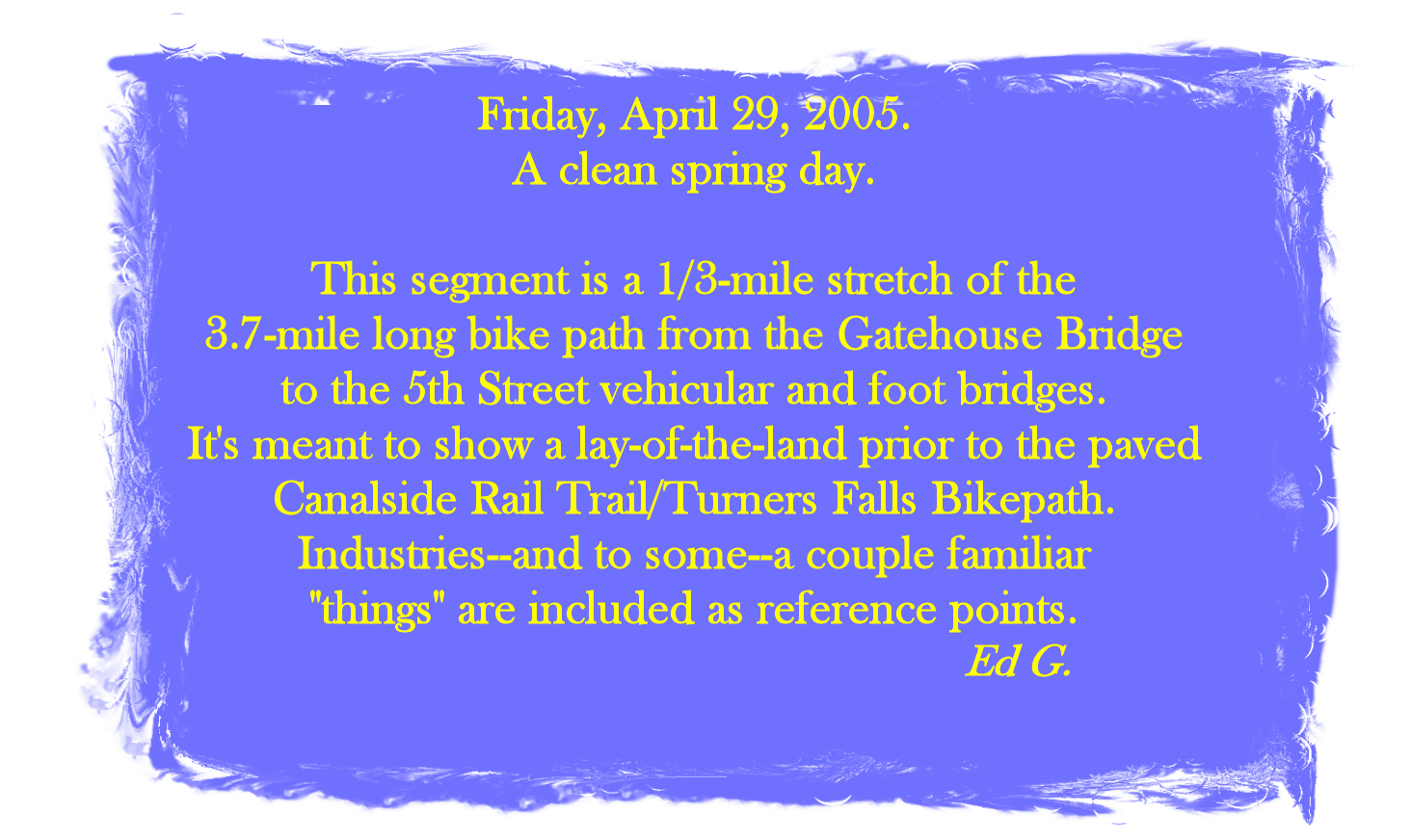A 49-photo gallery showing the lay-of-the-land prior to constructing the Turners Falls "Bike Path".