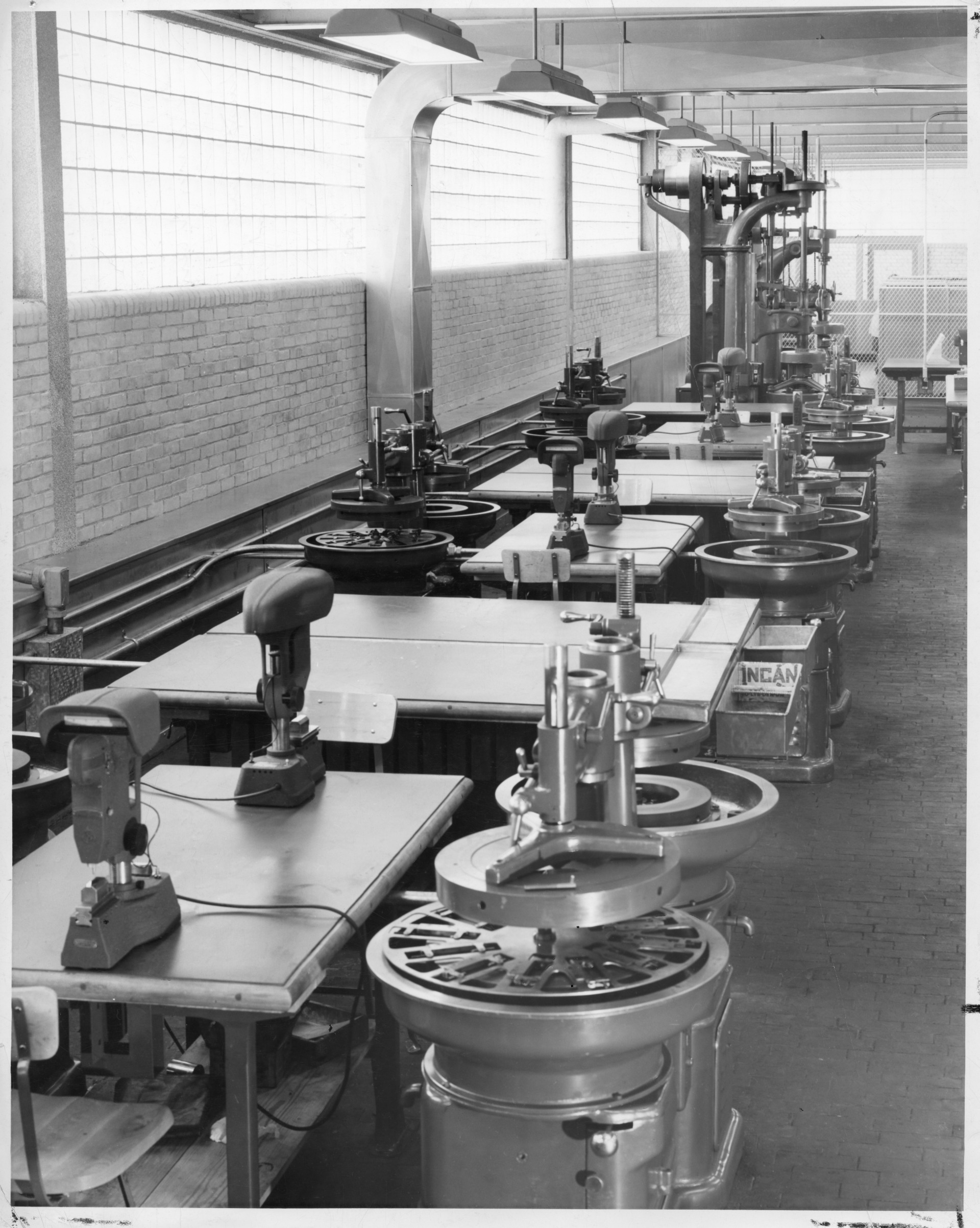 Greenfield Tap & Die Corporation – new gage plant – Interior view of gage plant shaving and conditioning duct with heavy metal top Photograph by Snively Deerfield Mass.