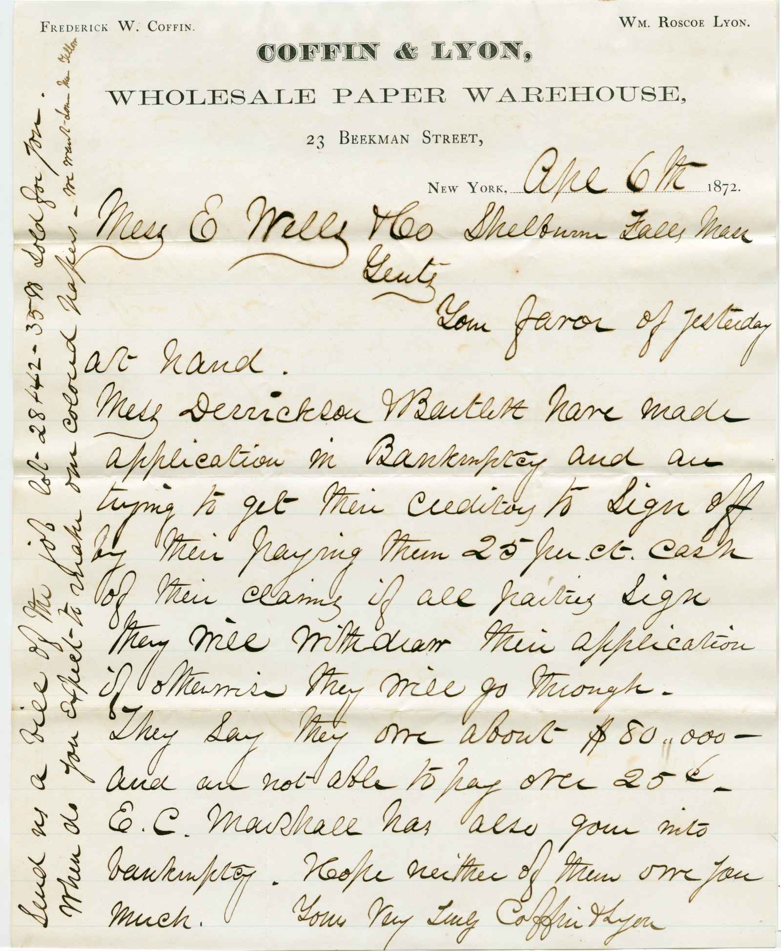 letter; Coffin & Lyon - Wholesale Paper Warehouse - N.Y.