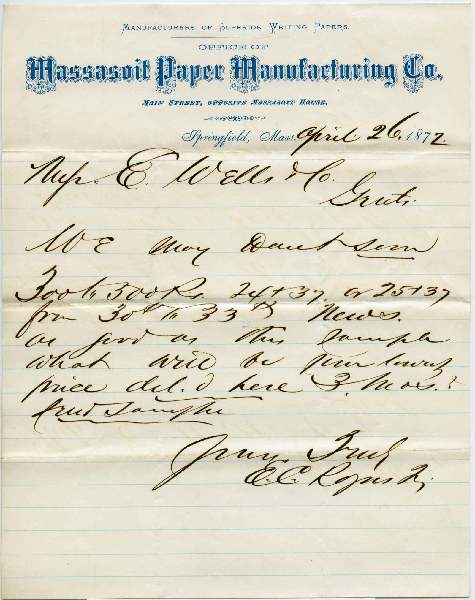 letter; Massasoit Paper Manufacturing Co. - Springfield, Ma.