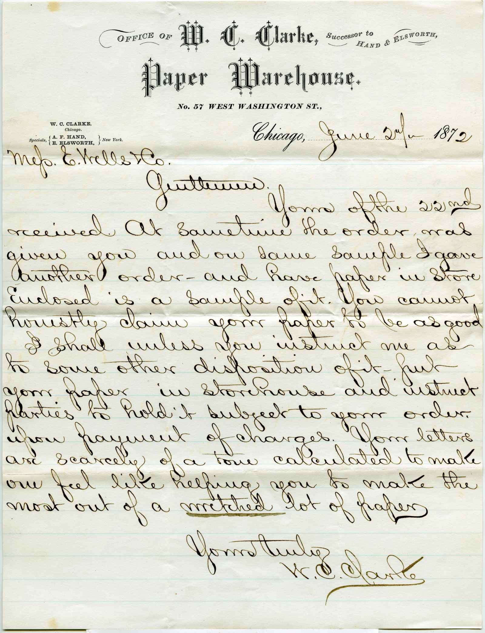 letter; Clarke, W. C. - Paper Warehouse - Chicago