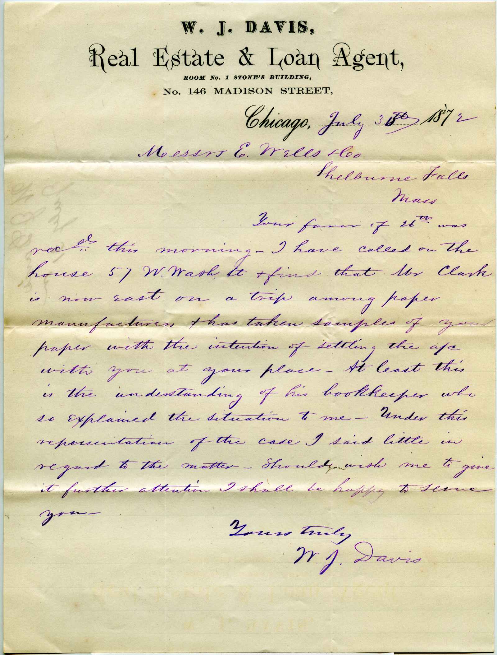letter; Davis, W. J. - Real Estate & Loan Agent - Chicago, Il.