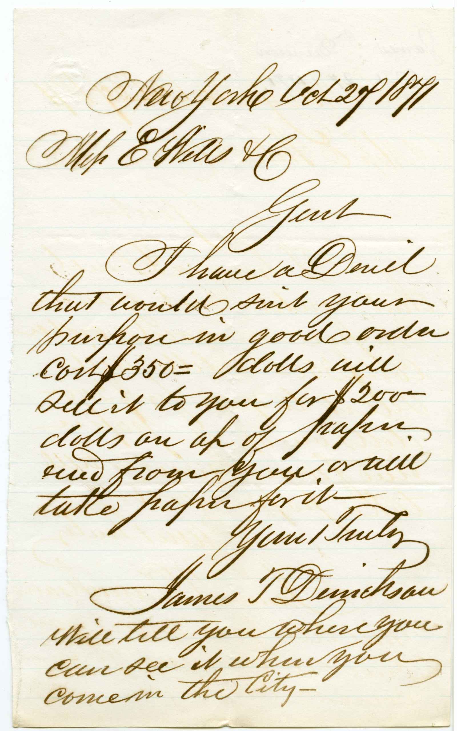 incoming correspondence to the papermaking company of Elisha Wells - circa 1870